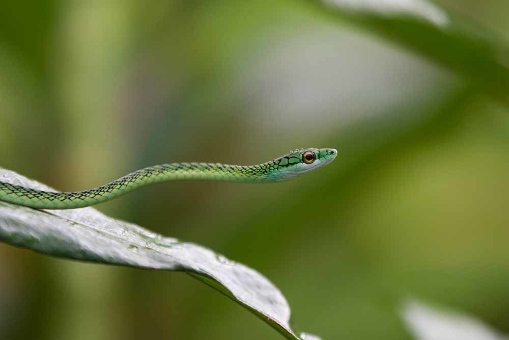 Tamandua! The cry went out from our naturalist Jorge early this morning on our skiff ride on Belluda Creek. We craned our necks and adjusted our viewpoints to see this arboreal anteater as it quietly went about the business of gathering its breakfast. Finally, it stepped into a clearing on a branch right over our heads! He seemed to be posing for our cameras, so we quickly took many images for posterity. Tamandua paparazzi! After being delayed for a short time due to a torrential downpour, we set out in our skiffs once again to explore the Dorado River — this time into the darkness of night! Our intended quarries were the wily caimans on the river; their positions in the complete darkness were revealed by the shining of their eyes under our strong spotlights. These youngsters allowed us to get right next to them as they floated on vegetation, just waiting to strike at a fish or other prey!