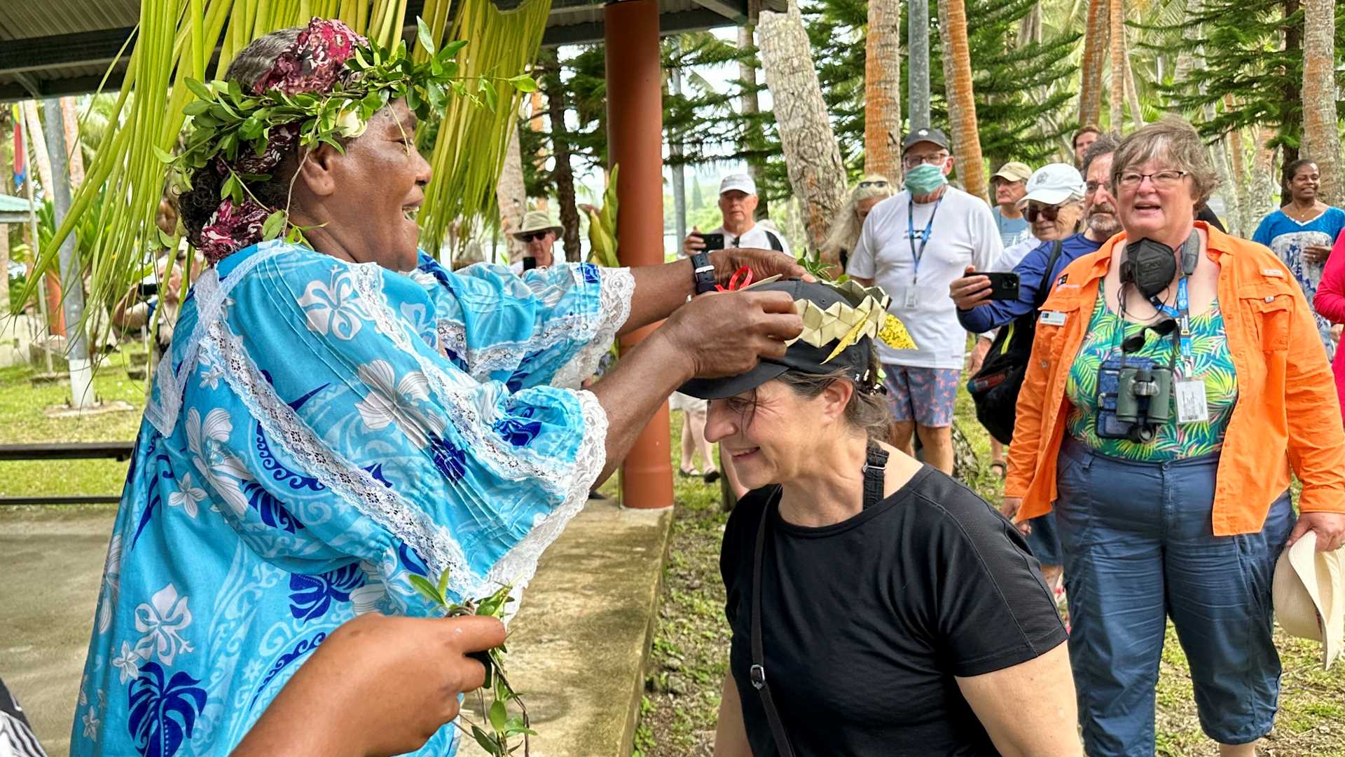 Today was a special day for us aboard National Geographic Orion as we are the first ship allowed to come ashore on the island of Maré since 2020. Maré is the second largest island of the Loyalty Islands. We arrived at the dock via our Zodiacs and embarked on a journey through the island. We arrived at a location under a forest of palm trees. Here, we were officially welcomed with singing, an abundance of fresh fruit, and locally made food. We then offered walks through the village.