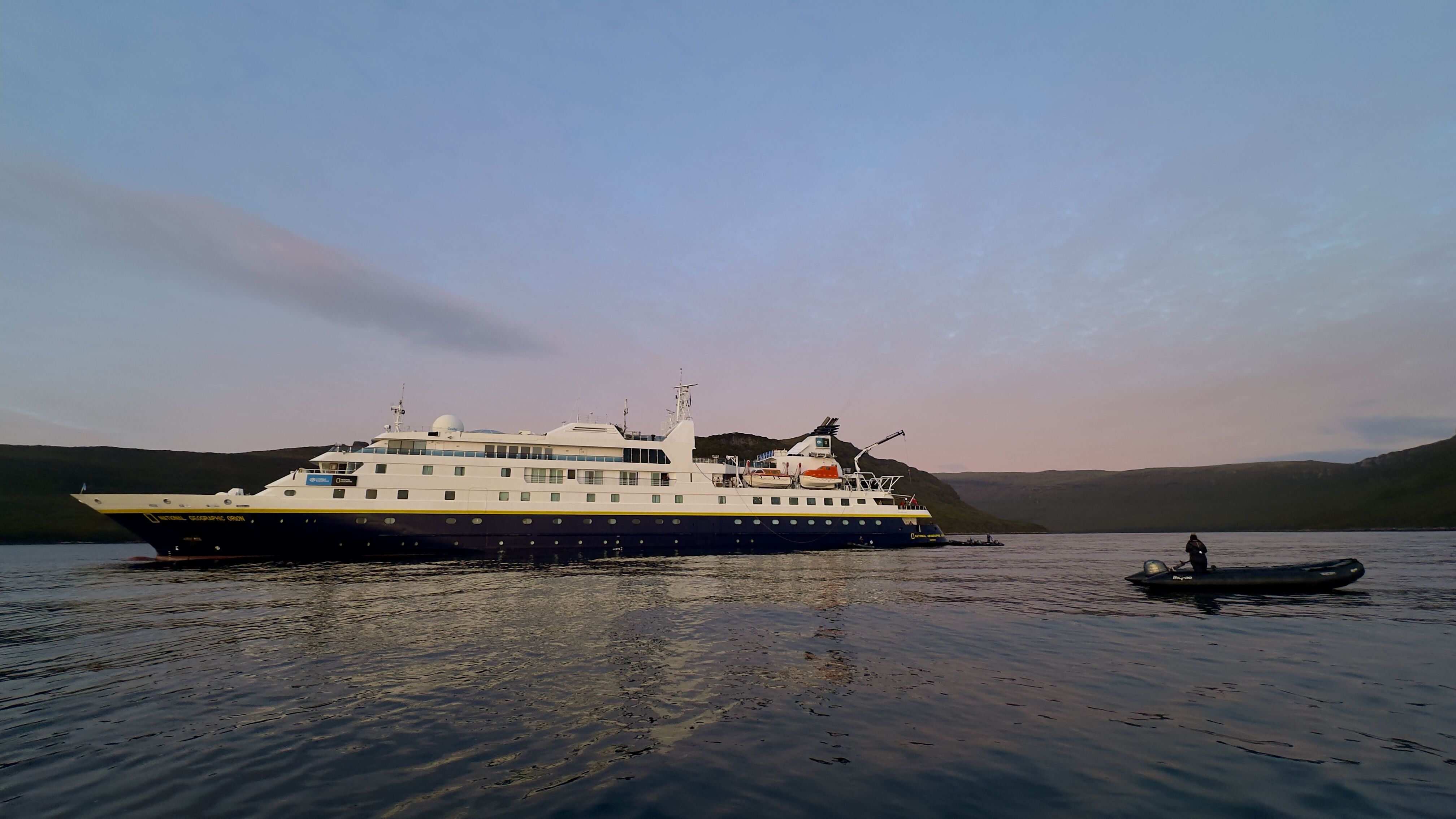We thought we were done for the day, but our expedition leader had a surprise for us after dinner. National Geographic Explorer drove itself into the ice! After our expedition team checked the conditions, we were told we could go out and walk on the fast ice. It was amazing! Finally, it was time to leave and prepare ourselves for more adventure tomorrow.