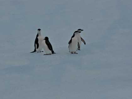 During lunch we headed for Cierva Cove and along the way come across some feeding humpback whales and spent some time with them. Nearby there was a very smooth large iceberg that was rocking in the swell and oftentimes sinking well into the seas and as it rose again huge quantities of green water cascaded off. What was really impressive to us all were the four chinstrap penguins on the top of this roller coaster and throughout the time we were with them standing as if they were fixed to the ice.