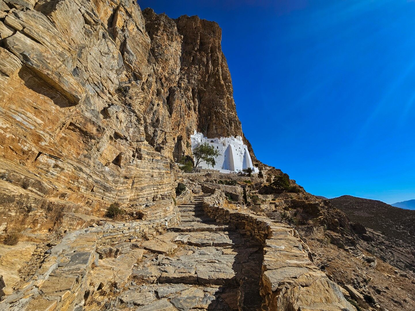 We really got a feel for the Greek Island of the Aegean with our stop this morning on the island of Milos. We toured the northern part of the island with our first stop being at Sarakiniko, where we walked down to see the amazing rock formations. We had fun trying to photograph the waves as they came crashing in on the cliffs.