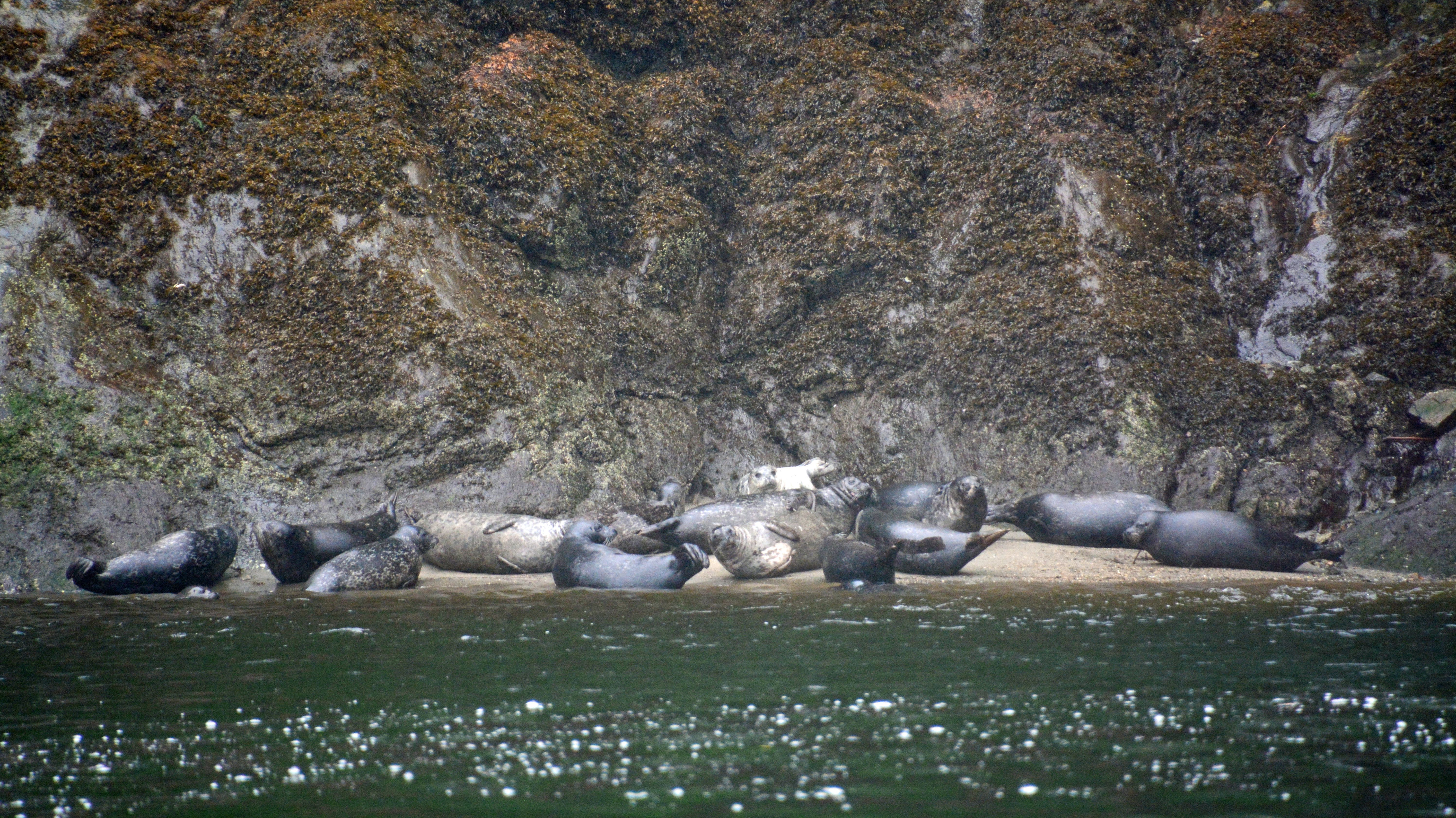 Rudyerd Bay was the location for our kayaking and Zodiac cruising activities. There were many bald eagles and harbor seals, skeins of water dropping from thousands of feet above, and a glacier-sculpted image of an owl overlooking the narrows at Owl Pass.