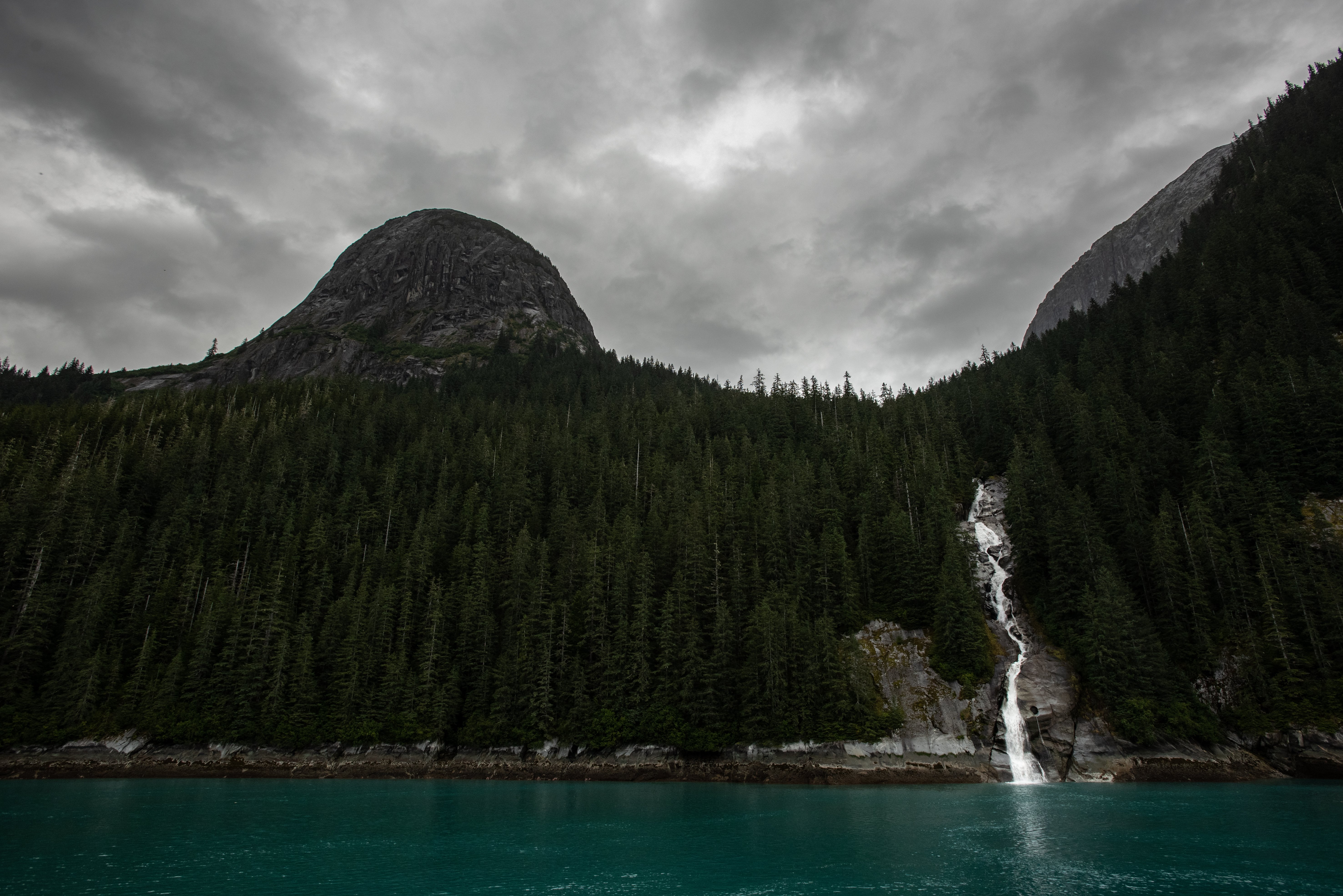 The National Geographic Sea Lion sailed under a low ceiling of mist as we entered Misty Fjord National Monument. Our first operation of the day, and of the trip, was a Zodiac cruise through upper Rudyard Bay, or God’s Pocket as it is colloquially known. While the expedition landing crafts explored the steep fjord walls, the ship made its way through the narrow opening of Owl’s Pass. Once inside the bay that marks the end of the fjord, the scenery was breathtaking. Water vapor hung in the air, constantly being resupplied by the light precipitation. The sheer walls rimming the bay are completely covered in vegetation of Sitka spruce, Western hemlock, red and yellow cedar, Sitka alder, and various lichens. This carpet of old growth is lush and almost glows bright green against the hazy sky. This area receives between 140 and 160 inches of rain a year, more than enough water to support centuries-old rainforest. The fauna loves the wet climate as much as the flora. Bald eagles swooped down from lofty trees to scavenge recently spawned humpback salmon deposited on the shore by the falling tide. Harbor seals inched their way out of the water onto exposed rocks beneath cascading waterfalls. If there’s one thing for certain in Southeast Alaska, it’s that it will rain and that is exactly what you want for a stunning day in Misty Fjords.