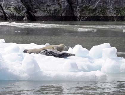 Due to the great weather—blue skies and no wind—we decided to launch kayak operations and Zodiac cruises. It is an impressive experience to paddle a kayak in between icebergs, bergy bits and growlers. We can only imagine the feeling the early travelers must have felt as they got trapped in ice as we easily navigate in our ice-enforced ship and bomber Zodiacs.