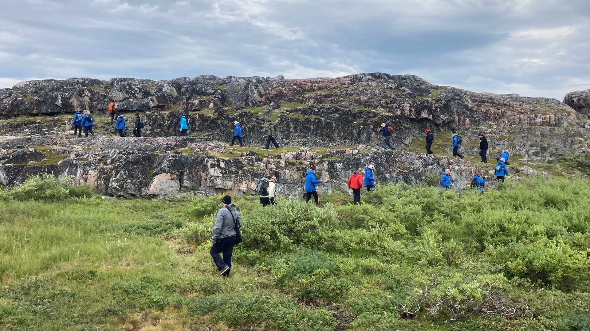 We departed the ship and headed to the island under slightly overcast skies. We were excited for an afternoon of walks in this archeologically and botanically rich location. The long walkers headed out at a brisk pace — but were quickly stopped by the abundance of ripe blueberries, bog cranberries, and cloudberries. We were not the only ones that enjoyed these wilderness fruits, as many signs of berry-eating bears were also found on our walks.