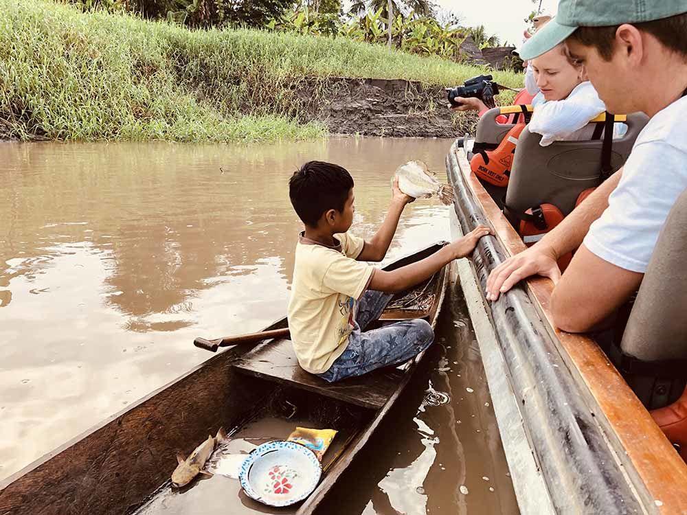 After breakfast, we headed out towards Nauta Creek for more exploration and wildlife observation. The forest is fascinating due to the diversity of plants and animals that make up the ecosystem. In small patches of forest, you can see several types of raptors, including the photogenic black-collared hawk, cormorants, sloths, and night monkeys!