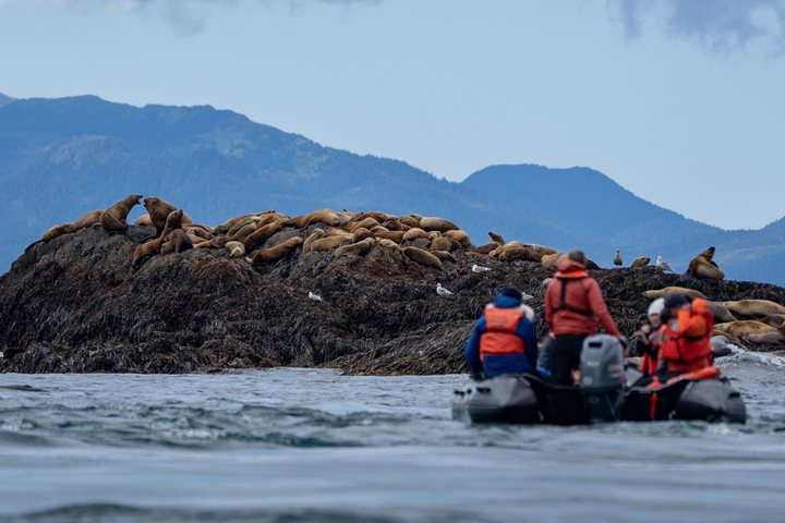 National Geographic Sea Bird’s morning anchorage within Neka Bay was entirely new to all staff and a majority of the crew. This was a true expedition in every sense of the word - an exploration of a place not explored regularly and discovering what it has to offer. From the time our high-topped boots hit the water, discovery was everywhere. The intertidal was dotted with a constellation of sea stars, Dungeness crabs hiding in the algae, and barnacles sealed tight to stave off the heat of low tide. Our trek to the forest was exploratory in and of itself.