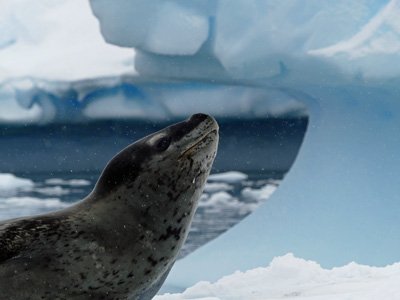 National Geographic Resolution spent the day surrounded by icebergs and sea ice in Crystal Sound as the weather got sunnier throughout the day. Guests experienced Detaille Island during the morning activities. Everyone went on guided Zodiac rides around the island where we saw numerous crabeater seals and icebergs. We stopped to observe an Adelie penguin colony, including dozens of penguins waiting to jump in the ocean. Many people went on shore to see the historic research hut from 1956-58, including all the original canned food and equipment kept in pristine condition. Some guests climbed the snowy hill to see the top of the penguin colony across a deep ravine. In the afternoon, the ship cruised around Crystal Sound so we could see the sea ice, glacial icebergs, and huge tabular icebergs. There were beautiful blue sea caves and arches in many of the icebergs, as well as dozens of crabeater seals on the sea ice. However, two humpback whales stole the show when they appeared in the sea ice near the ship. We could hear their loud exhaling and see them diving up close. The rest of the day was spent relaxing, enjoying a presentation, cocktail hour, recap, and dinner as the sun showed brightly in the west. What a perfect day to end our awesome week in Antarctica.
