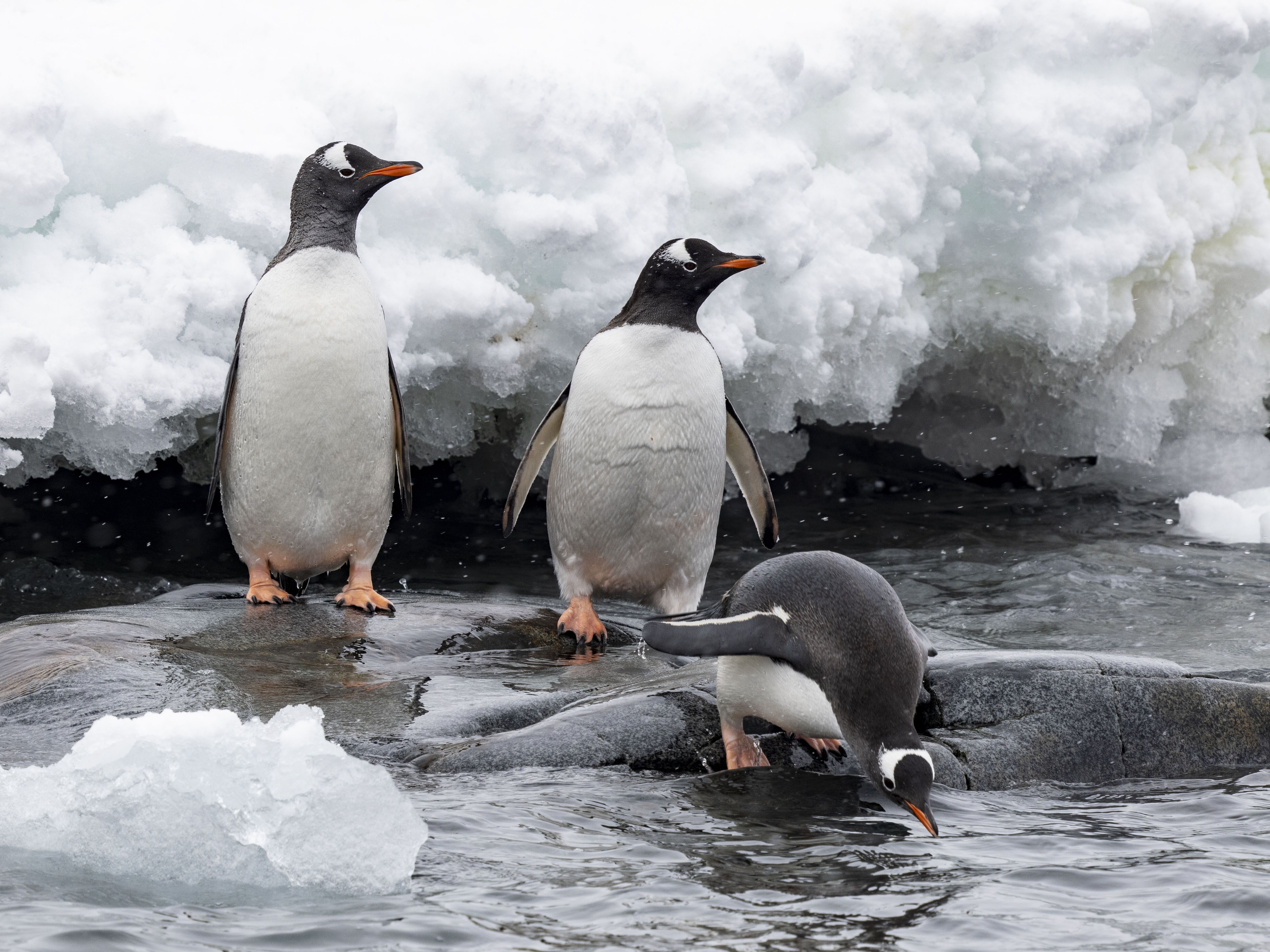 This morning, we started our day by sailing from the Weddell Sea to the west side of the Antarctic Peninsula to our afternoon destination at Neko Harbour. So often our guests think of sailing time as downtime. However, National Geographic Resolution is one of our most important tools of exploration, a way for us to explore our surrounding waters. This was evident when we ran into a pod of killer whales that we watched for a half hour. After lunch, the weather turned more exciting, and we found ourselves exploring the gentoo penguin colonies at Neko Harbour by foot and Zodiac. The weather added to the sense of exploration, and the visual impact was both surreal and mesmerizing.