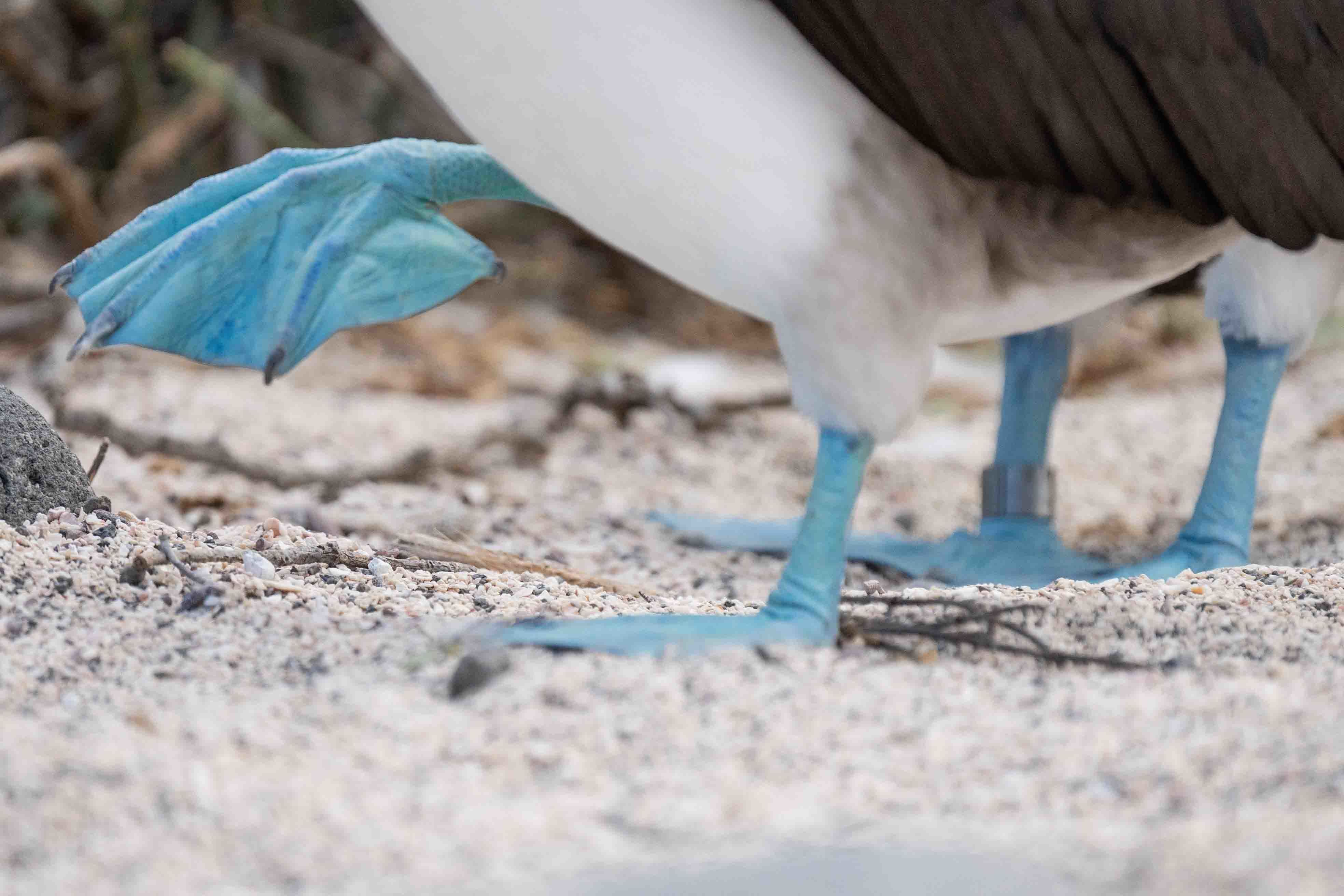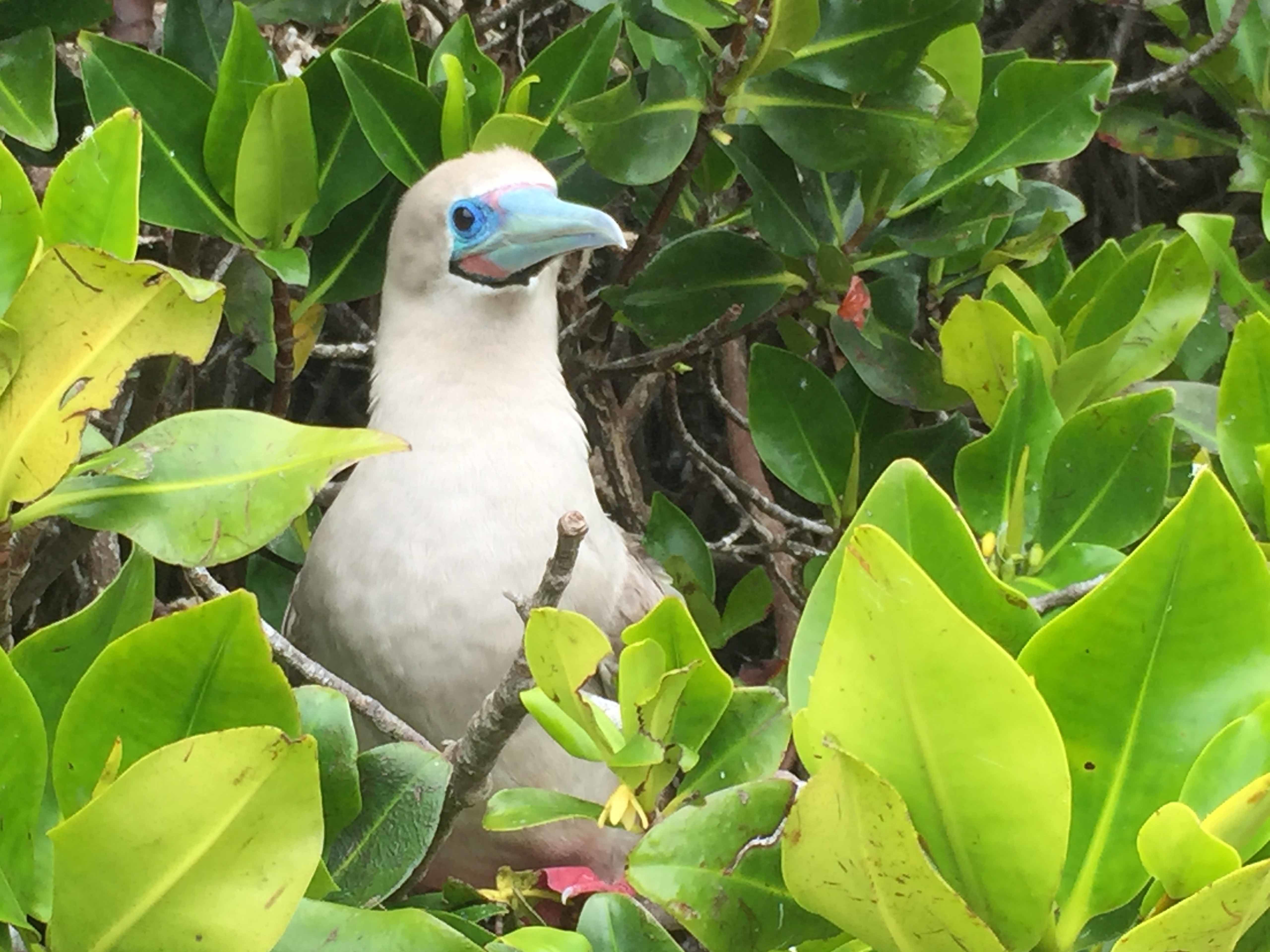 Sunday was an amazing day in the Galapagos. We woke up anchored next to a remarkable place: North Seymour, an island that was named by pirates in the 17th century and that hosts a colony of several species of sea birds. Right after breakfast we got in the Zodiacs and disembarked on the southern part of this small island. During our hike, frigate bird females were soaring over us, males were puffing up their bright red gular pouch to attract females, and chicks were trying to lift off. A newborn baby sea lion was next to mama, while bigger ones were resting on the beach. A couple of mobula rays were jumping in the distance. Blue-footed boobies were courting right near our feet and some juveniles and chicks were around waiting for their parents. Some land iguanas were posing for the camera right near the trail, another one was climbing a tree! Very unusual behavior, but the presence of the iguanas themselves was unusual, since this is not a natural population of the island. They were brought here in the 1930s by Captain Allan Hancock, an oilman that was concerned about the possible extinction of these animals. He actually saved them by placing 72 land iguanas on North Seymour. We already saw all of this wildlife and it was only 10:00 am!