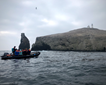 Our first full day in the Galapagos starts well with high energy and optimism. After breakfast we are in the Zodiacs, heading out to the island’s landing to be welcomed by several species of birds, crabs and sea lions. In the interior of the loop trail, the nesting sea birds are abundant. Frigates are nesting, and for that the males inflate their red gular sacs to the size of soccer balls that are then displayed to females for mating. Some sit on the eggs and are already raising young.
