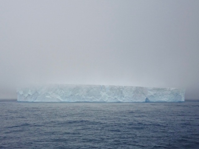 In the afternoon, we found our next destination as a barely distinguishable land mass. The outline was fading into the accumulation of low clouds, and the soft curtain of fog was blurring the landscape in pale hues of grey and red.