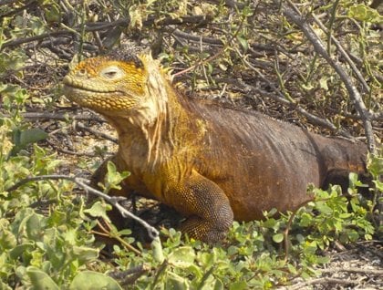 As we arrived to North Seymour this morning, we could see frigatebirds overhead, gliding along the coast line. Some male frigates with a partially inflated red pouch passed us by as we landed on the beach, followed by juveniles and females. A few feet into the walk, we found a couple of land iguanas sunning themselves along the path, maybe wanting to warm up a bit before they start foraging for food. Blue-footed boobies also waited for us along the trail, and we witnessed some excellent courting displays. We watched as a male stopped and pointed the bill upward, hoping to be seen by a female that was flying right above him. She understood his move and landed right next to him, and as she approached him, he started whistling. This definitively looked like a successful courtship. It is the time of the year for courting, so there were quite a few birds gathered here along the coastline. There were also a few of them that had one or two eggs, and this was a wonderful surprise for us, since it has been difficult to see them nesting lately. Throughout our walk, we also saw many frigatebirds with inflated pouches, females nesting and immature birds fluttering their pouches in order to cool off. They were the highlight of the morning, and we delighted in experiencing all of their different sounds, and behaviors.
