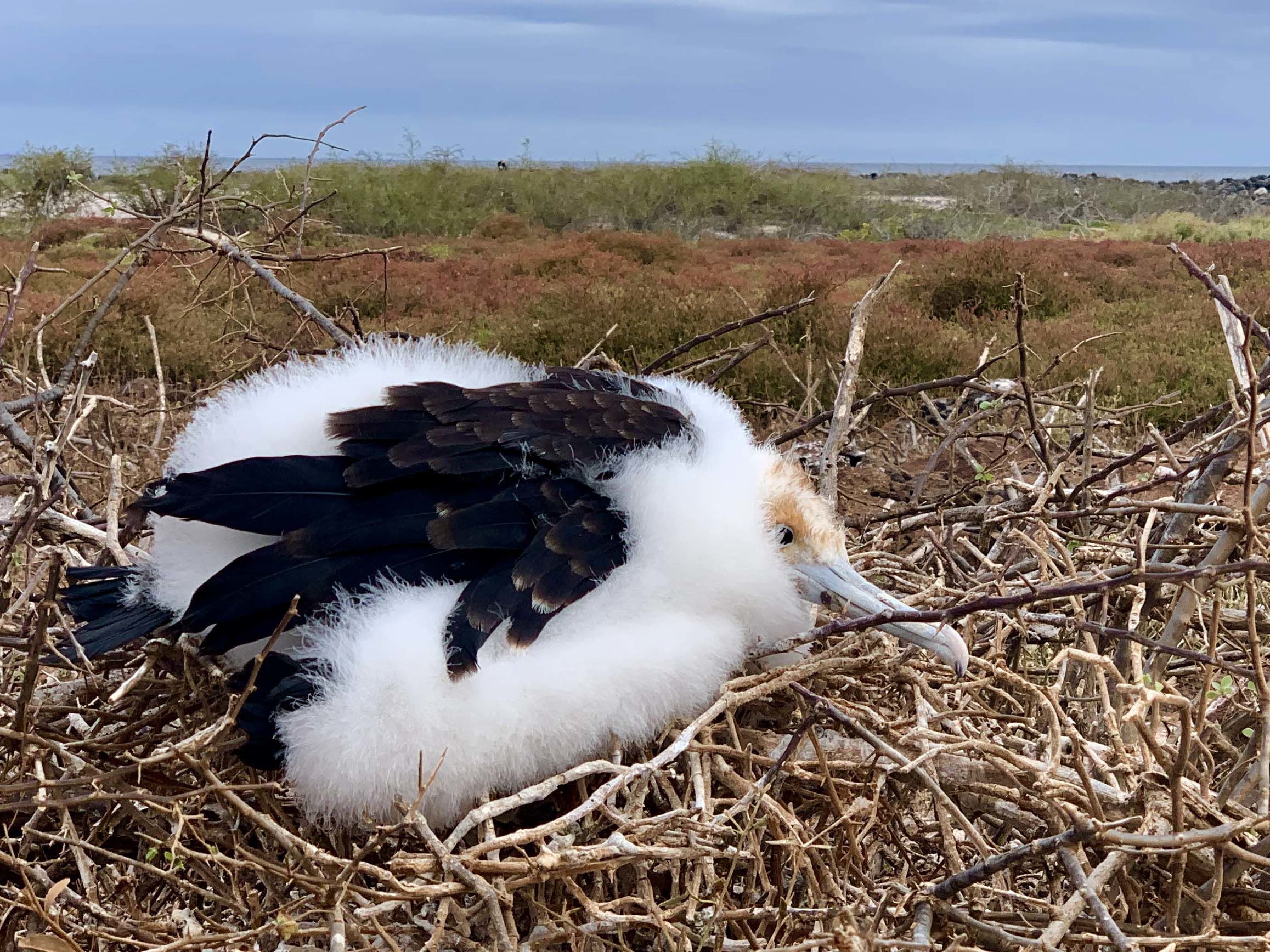 Sadly, our expedition aboard National Geographic Gemini is nearing its end. Our day began with a hike at the base of towering cliffs. A steep ascent led us to a plateau of a palo santo forest, sparse and otherworldly. Almost immediately, we were surrounded by red-footed boobies nesting in low trees and Nazca boobies on the ground. A highlight was spotting a short-eared owl perched silently among a lava crevice, camouflaged and hunting storm petrels. The calls of frigatebirds rang in the air, with their inflated red pouches on full display in a mating show. After our hike we enjoyed water activities, such as kayaking along the cliffs and snorkeling. In the late afternoon, we landed on the coral sand beach of Darwin Bay. Guests enjoyed a relaxing stroll along the shoreline bordered by mangroves and nesting bird colonies. The presence of swallow-tailed gulls, lava herons, and marine iguanas provided excellent photo opportunities.