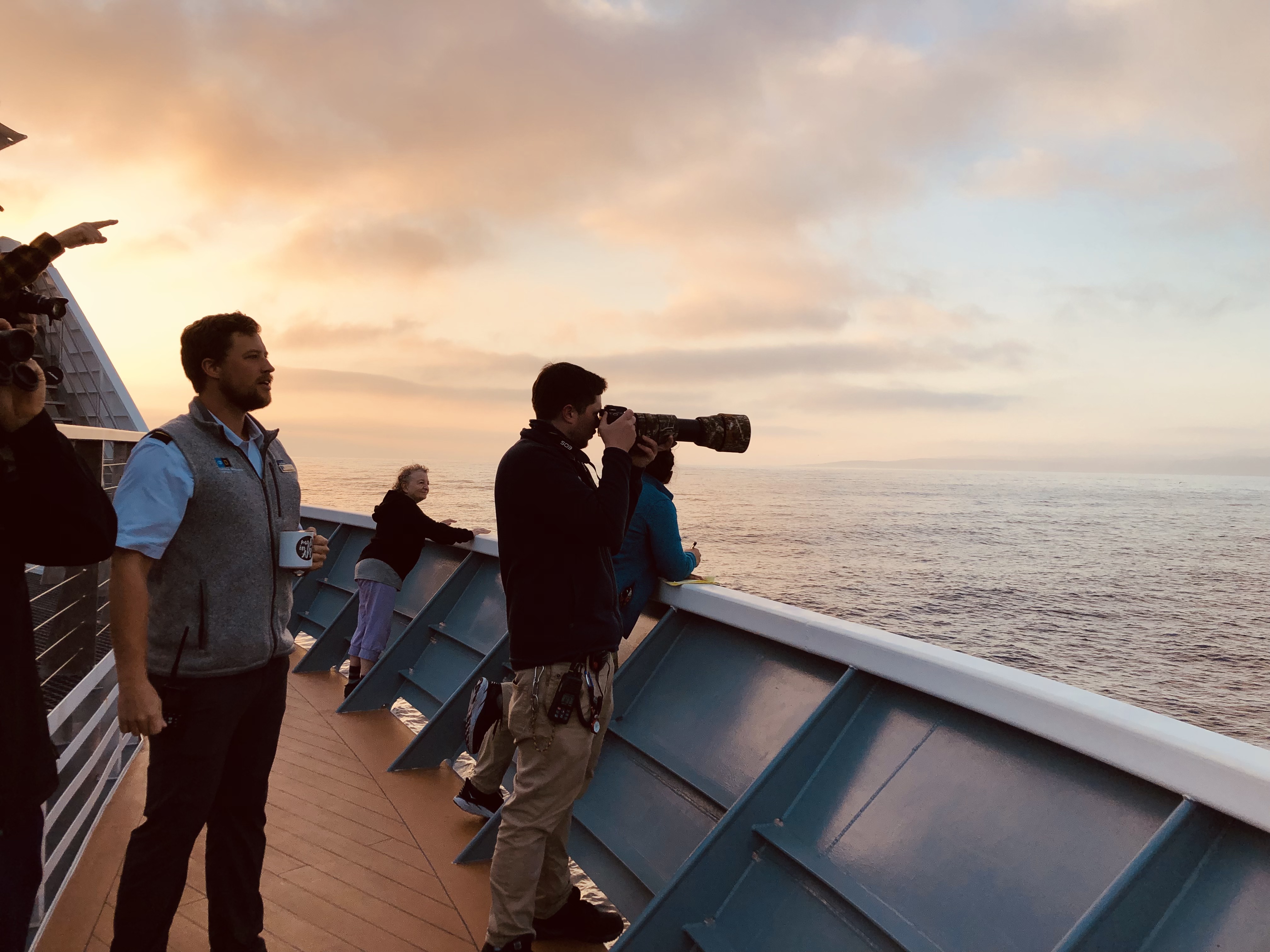 This afternoon our guests had a chance to snorkel, from Zodiacs in deep water or from the shore. Both places had clear water, lots of fish, and playful sea lions. Towards the end of the afternoon, we had a relaxing walk along the coast and among the sea lions. And the sight of American flamingoes on the edge of a lagoon was a special treat.