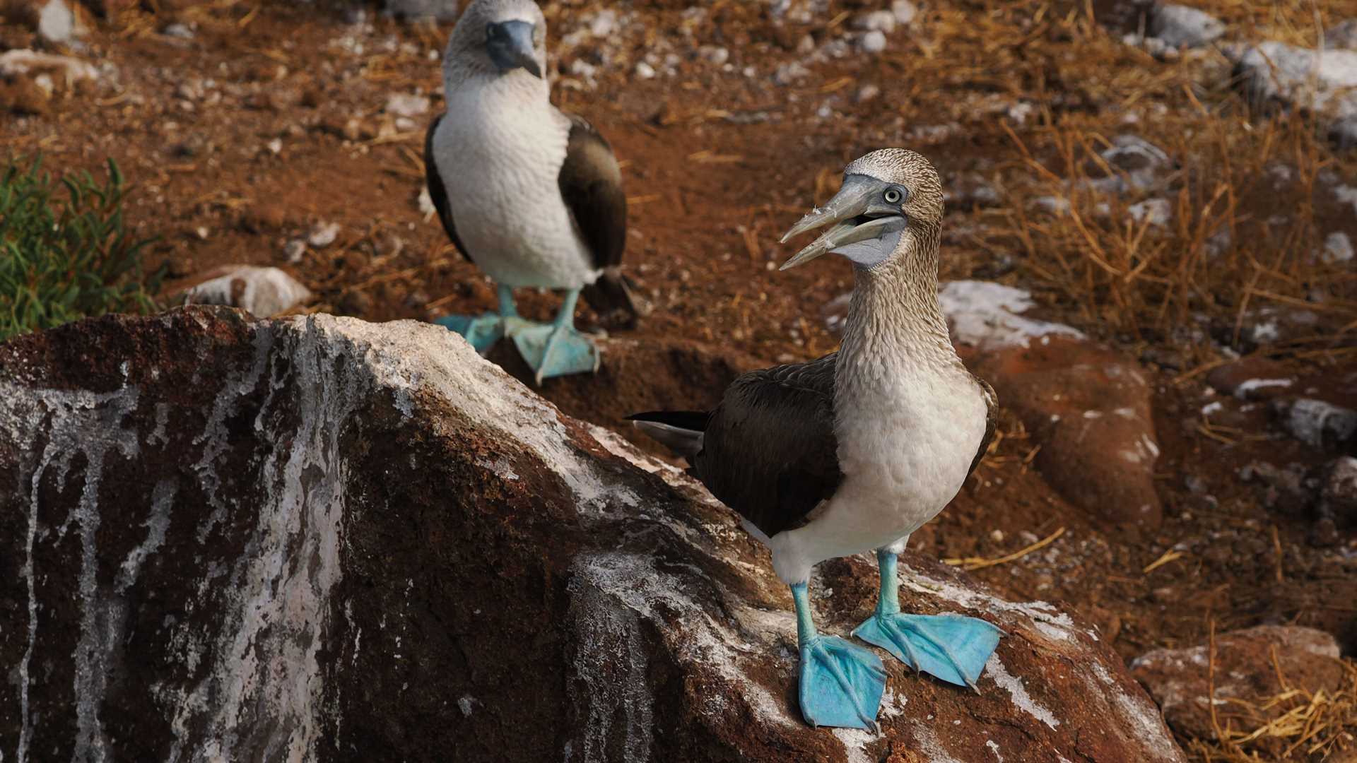 The first full day of our expedition took place in the central part of the archipelago; on the northern side of Santa Cruz Island, we visited North Seymour. This island is small but full of life. Its wind-privileged position and flat grounds have made this place the perfect spot for bird nesting. Our hike looped around the island, showing us the inside of the incense tree forest and then the sandy shoreline. This walk offered everyone the opportunity to see the famous blue-footed boobies in all different stages: from adults that were performing their courtship ritual, to juveniles ready to depart for their life journey. We also witnessed the nest building and displaying of frigatebirds. The male frigatebird’s large red pouches fully inflate to attract females, giving a show of color and contrast. Our groups also met the land iguanas, snakes, and playful sea lions by the shore of this beautiful island.