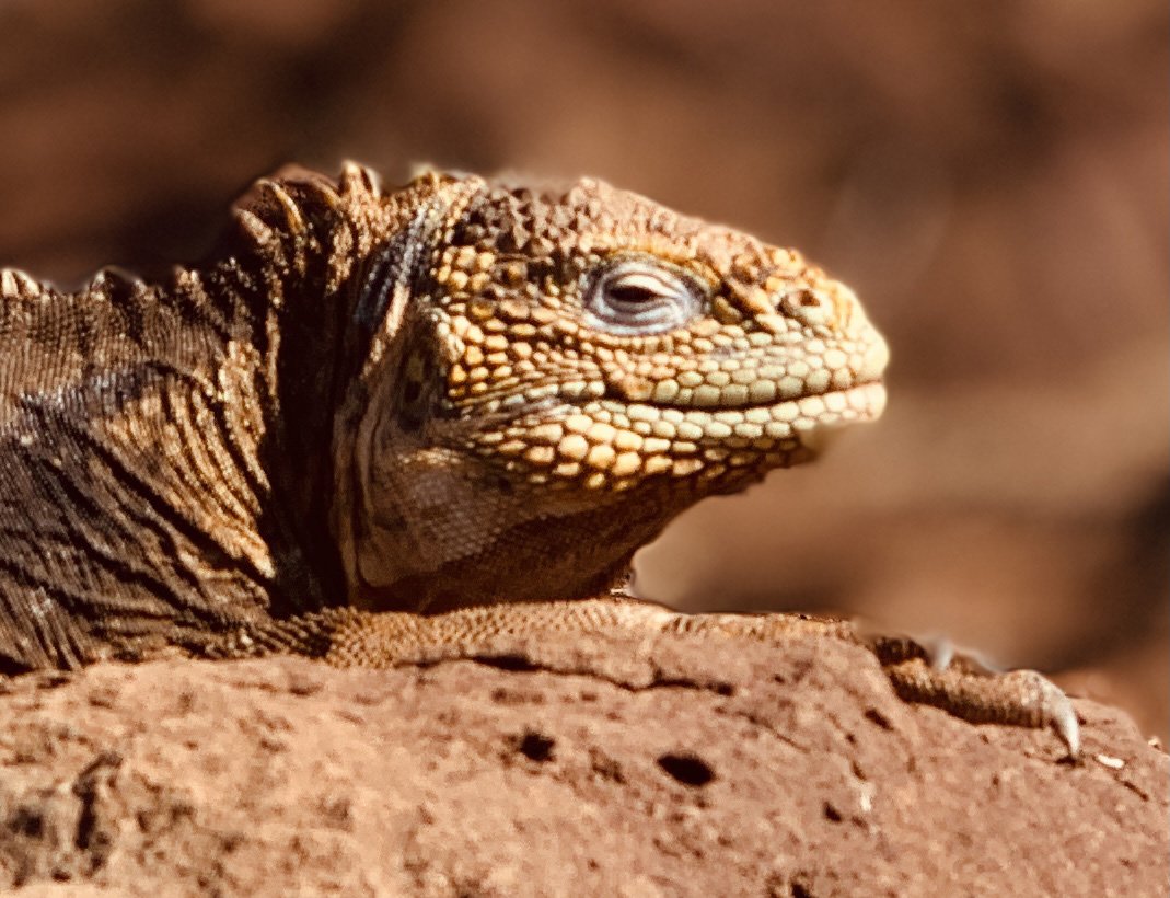 Blue-footed boobies also are engaged in nesting. Most of their young are large enough to learn to fly and dive for fish. The interactions among all of the inhabitants here is quite interesting and sometimes unpredictable. Sea lions here find areas with sand or vegetation to rest. Land iguanas find the scanty water from succulents, like local prickly pear cactus. Marine iguanas sunbathe to gather heat before they enter the water for algae.