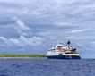 National Geographic Islander II anchored beside the coast of tiny North Seymour Island. After a dry landing, the rocky trail led us to a nesting spot for magnificent frigatebirds. A highlight was a male frigatebird displaying his red, balloon-like gular sac during courtship to attract females for the nesting season.