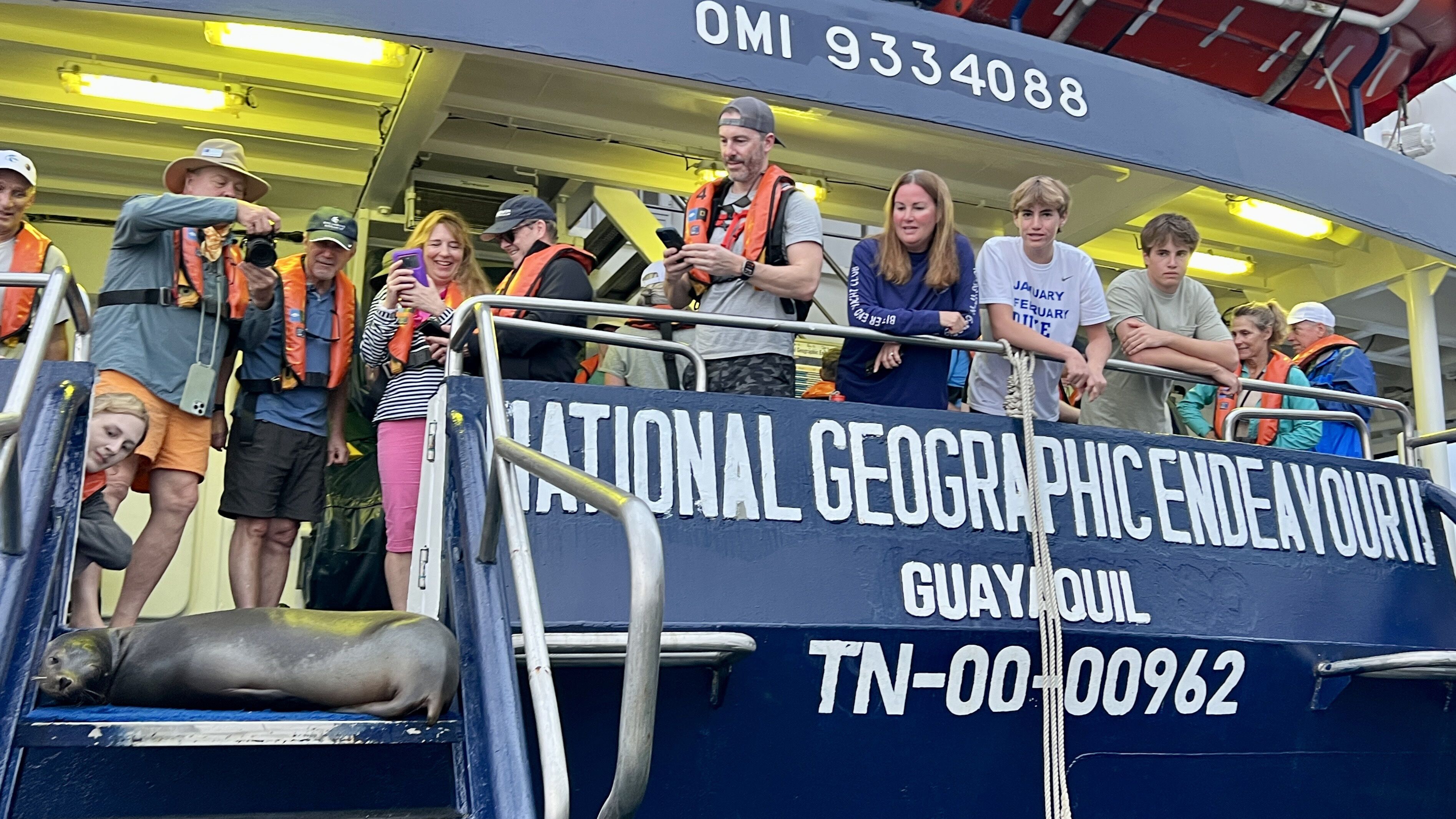 In the afternoon, we had our first water activities on Rábida Island. What a great experience! For many guests, it was their first time swimming with sea lions, and we observed a lot of fish. Finally, we took a walk to see flamingos on a beautiful red beach.