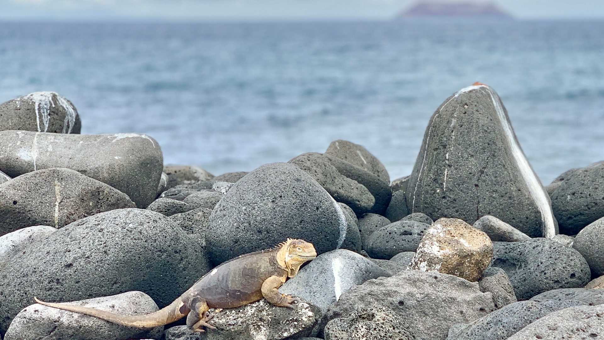As the trail takes us inland, we are surrounded by a dry palo santo forest of incense trees. The occasional Opuntia prickly pear cactus emphasizes the arid landscape. Galapagos land iguanas move about slowly, trying to warm up and become active in the early morning. As we head farther inland, male blue-footed boobies make an occasional “whistle” to try to attract a mate. Back at the coast, Galapagos sea lions laze among the volcanic boulders while swallow-tailed gulls tend their nesting areas among the marine mammals.