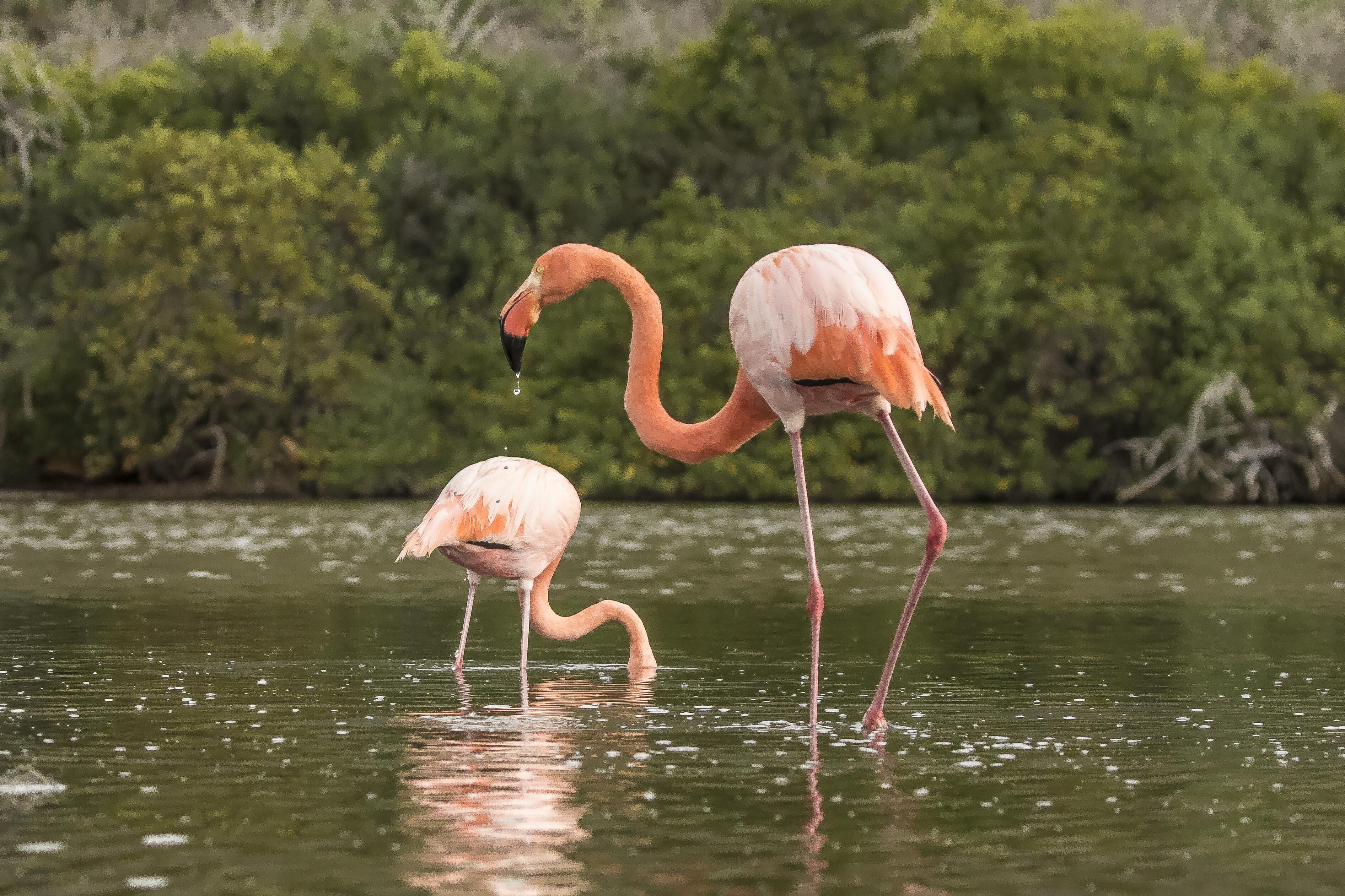 After snorkeling, some of us opted to go kayaking along the coast of Rábida, while others went on a walk along the beach. During the walk, we spotted several American flamingos feeding in a brackish water lagoon behind the mangroves. After a beautiful sunset on this incredible expedition day, we returned to National Geographic Islander II.