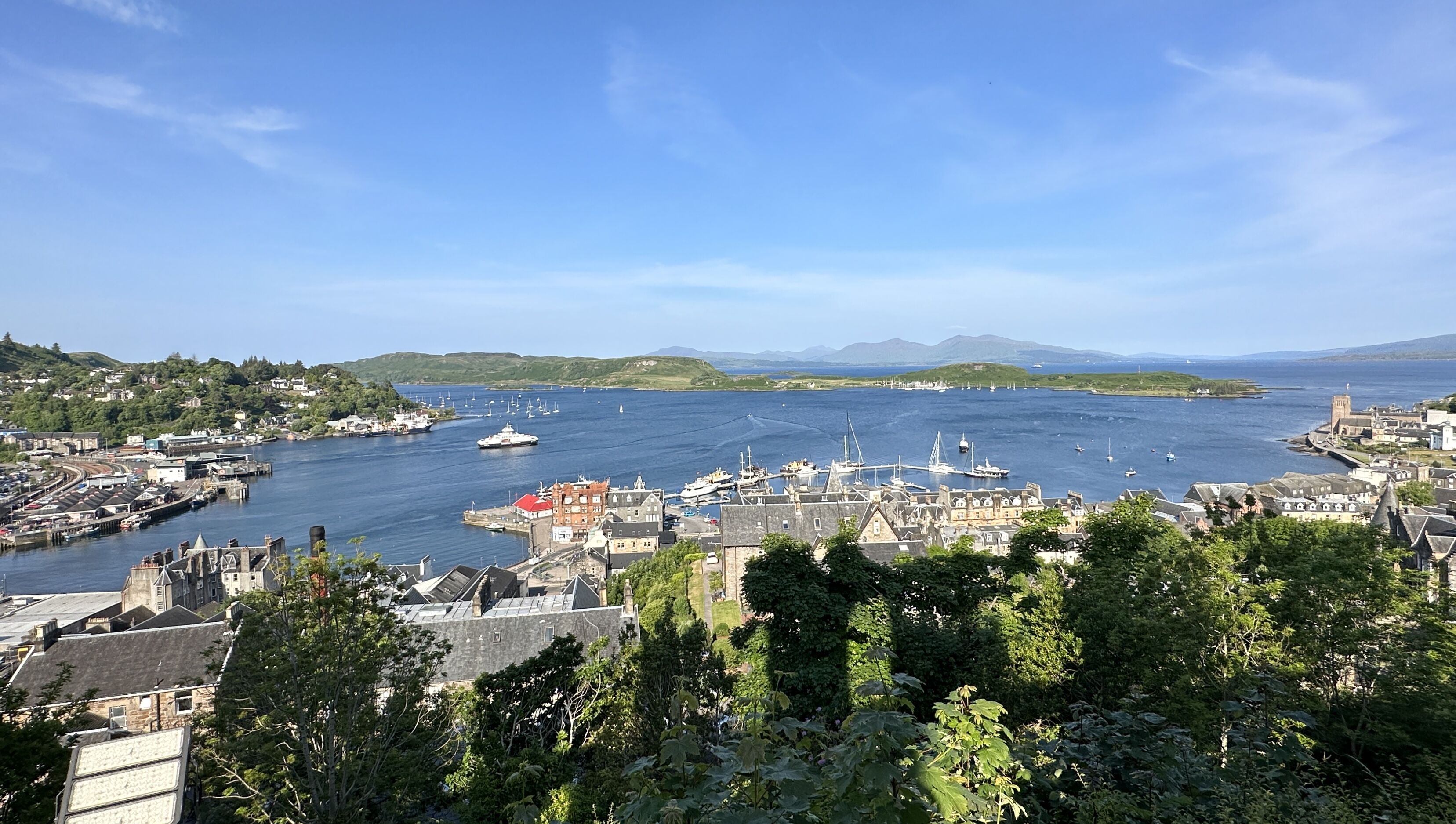 We awoke this morning on the Lord of the Glens docked in the port of Oban. We took off into town towards one of Oban’s famous landmarks, McCaig’s Tower. Also known as McCaig’s Folly, it was built between 1897 and 1902. We took a great walk through town and enjoyed an incredible view of the town and port from the tower. We sailed through the beautiful waters of the Highlands on our way to the Caledonian Canal. The locks were under inspection, so we went into expedition mode and switched to a secondary plan. We docked in Tobermory. After dinner, musicians came aboard for an intimate concert of Scottish folk music. The couple, Hannah Fisher and Sorren Maclean, were amazing, and it was a once in a lifetime show for us.