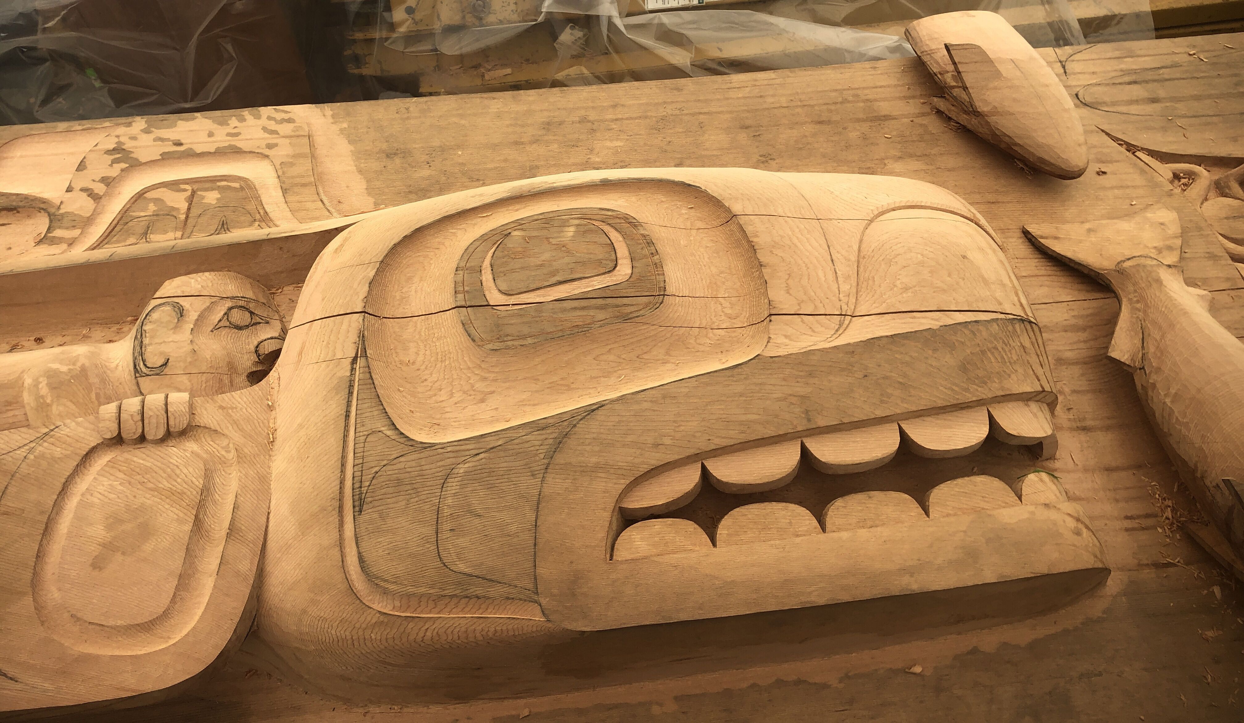 After a brief session of retail therapy at Sarah’s Haida Gifts, we continued to Christian White’s carving shed. We saw a new canoe in progress along with other commissions awaiting completion or delivery. The assortment of handmade carving tools gripped our imaginations as though they were keys to this fine work, though we all knew there was no substitute for a lifetime of commitment to the art.