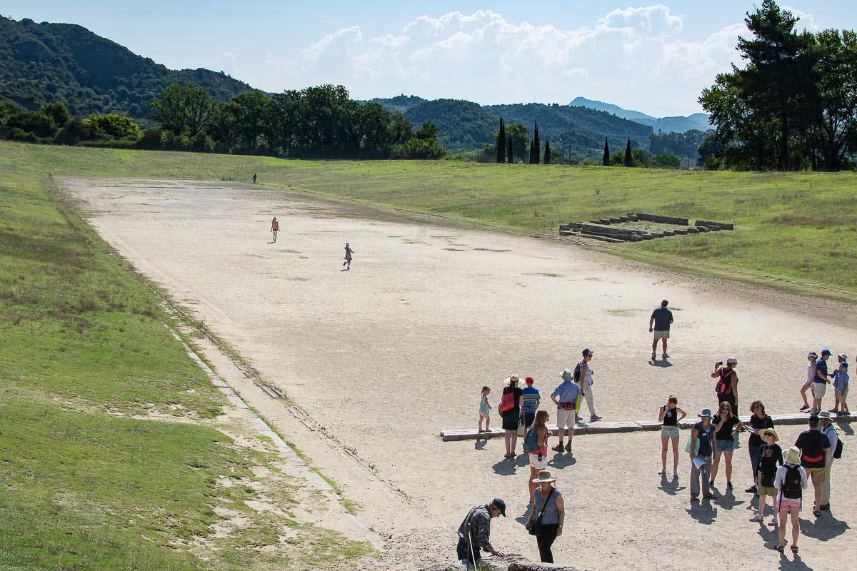 The bus drive was short and then the blooming oleander welcomed us into town. We leisurely walked through the site studying the gymnasium, the wrestling center, and the impressive temple of Zeus. The tour brought us to the stadium. I thought I heard the cheering of the ancient crowds and the guests took pictures of the starting line. Passing by the temple of Hera and the Philippion we walked to the museum to study the incredible artifacts excavated by the German archaeologists at the end of the 19th century.