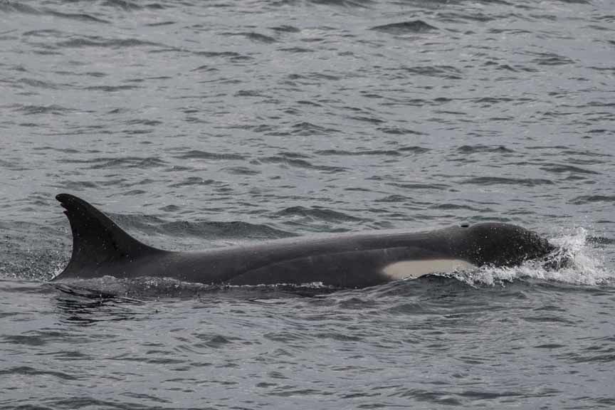 At about six o’clock this morning we got the call, “killer whales off the bow!” It was the start of the day! Soon after that, National Geographic Orion continued on its way toward Orn Harbor, and our morning activities; climbing a hillside to have another great overview, or a Zodiac cruise. We relocated to an area of Dallman Bay called Patagonian Bay for our afternoon activity of kayaking in serene conditions, surrounded by glaciers and icebergs. The final activity was a very refreshing “Polar Plunge” off the marina deck as the rest of our shipmates looked on! Another superb day in Antarctica!