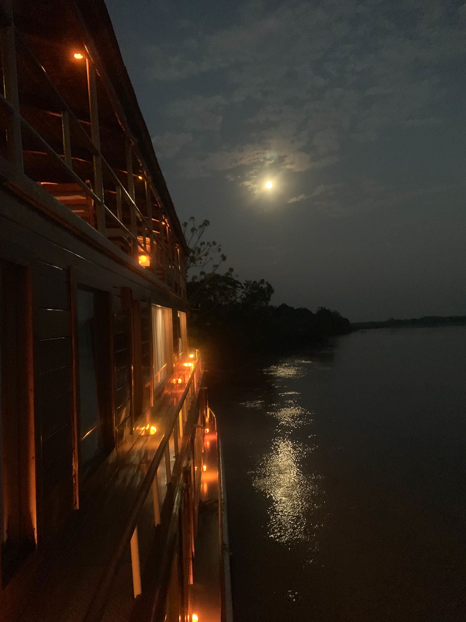 We had no time to rest until we made it to our destination. A structure once known as the jungle restaurant was at one time a house built by ex-President Fujimori, now seeing use as a ranger station. Once back onboard, a “mandatory” siesta (nap) was welcomed by all. We reconvened for recap and dinner, and afterwards an exploratory night walk that was very enjoyable.
