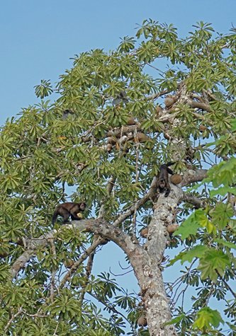 First were the hoatzin birds, which by large numbers were found jumping from branch to branch giving us all spectacular views. The howler monkeys were another of the sightings, and their red-colored fur gave them away easily, even in the distance. At some point, a group of “monos negros” or brown capuchin monkeys were also found foraging one of the abundant cannonball trees of the area. This was perhaps one of the most exciting of all the sightings, as brown capuchins rarely stay around once sighted, but these were very relaxed!