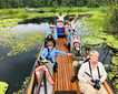 Later, we boarded our skiffs again and headed back into the Pacaya. Several guests opted for an “Amazon plunge” while some pink river dolphins swam a short distance away. Others that chose not to jump into the river continued exploring into the Pacaya and watched several family groups of the large and appropriately named red howler monkey. Their bright red-orange bodies stood out among the green color of the treetops; they were stoically waiting under the rain that had started to fall. Our way back to Delfin II under the rain reminded us that we are exploring one of the rainiest places on Earth during the rainy season, and that rain is a blessing that brings life to this unique place called Amazonia.