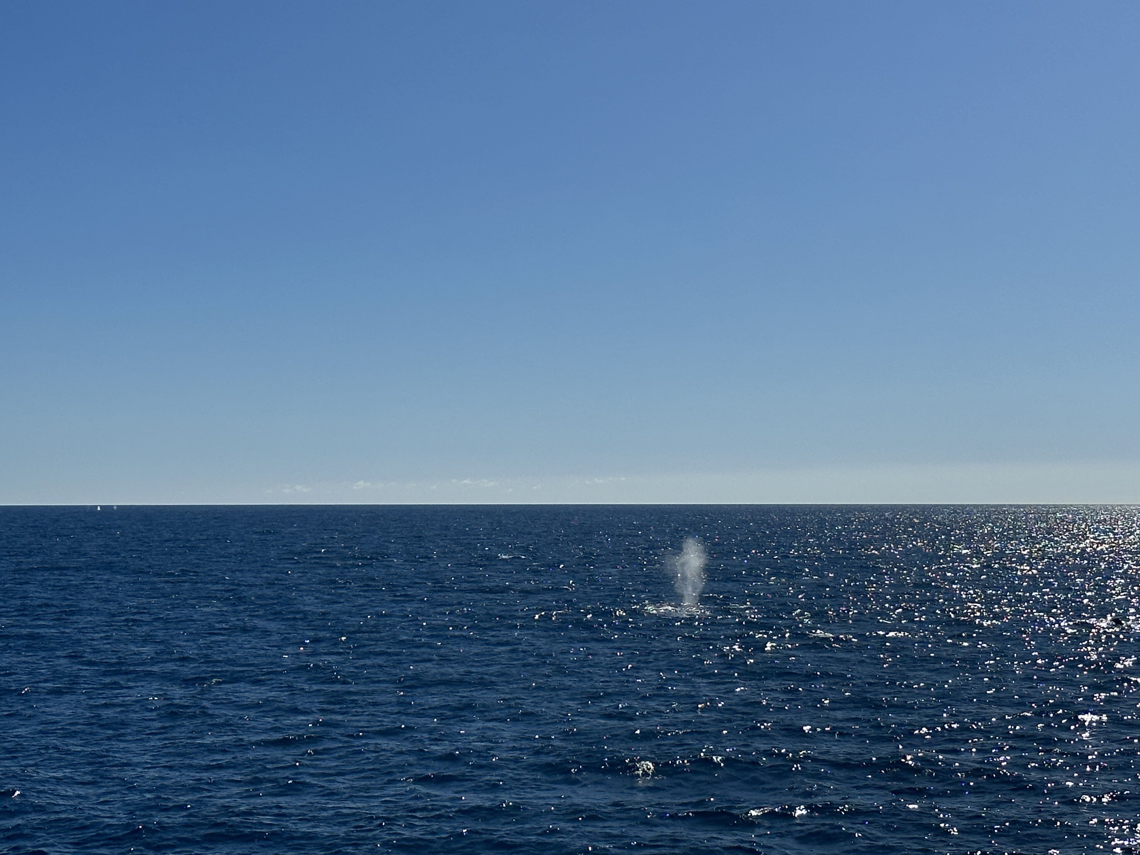 There is no better place to wake up than on a ship in the Pacific Ocean. Last night, National Geographic Venture rounded Land’s End – the southern tip of the Baja California peninsula – and began the trek north towards the gray whale mating lagoons. As the sun rose over the mountains of the cape region, we were greeted with common dolphins interested in riding the pressure wave produced by National Geographic Venture’s bulbous bow. Interesting varieties of seabirds circled the ship, including masked boobies and shearwaters that we hadn’t seen while in the Gulf of California. Keeping our eyes peeled for the first gray whale sighting of the voyage, we saw many blows of humpback whales making their way south towards Cabo.