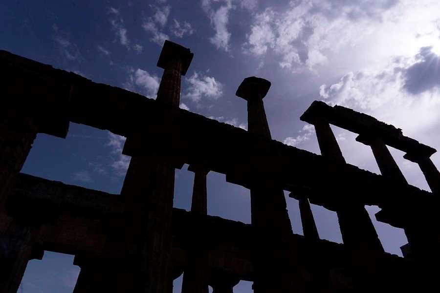The great German philosopher and classicist Friedrich Nietzsche, on first seeing the majestic Greek Doric temple of Athena, exclaimed that it was so perfect it must have been built by a god. Athena’s temple (where Romans may have worshiped Ceres) in the northern sanctuary is the product of much experimentation and the present temple, a fine example of the Doric architectural style. Yet one can see at the base of the capitals a subtle influence of later Iconic leaf decoration. The Doric style is easily recognized, as its capitals are typically square and unadorned. We visited and were privileged to enter the massive Temple of Poseidon (Neptune in Roman mythology), also a peristyle with 12 columns on its long sides (59.9 meters in length), the 24.3 meters distance of the 6 across the front and back, and one large interior cella containing the statue of Athena where the worshippers would have gathered. A wonderful visit to a magical place.