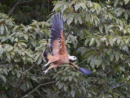 Here, in the Amazon Rainforest, every minute is important: full of bird sightings and new scenic views of the forest and rivers. Our daily activities started early with a pre-breakfast skiff ride exploring Pahuachiro Caño. (Here in the Amazon region the small rivers tributaries of the larger ones are known as Caños.) These Caños are the best paces for observation of wildlife, especially the elegant black collared hawk. The number of birds and the dense green forest are mind-boggling!