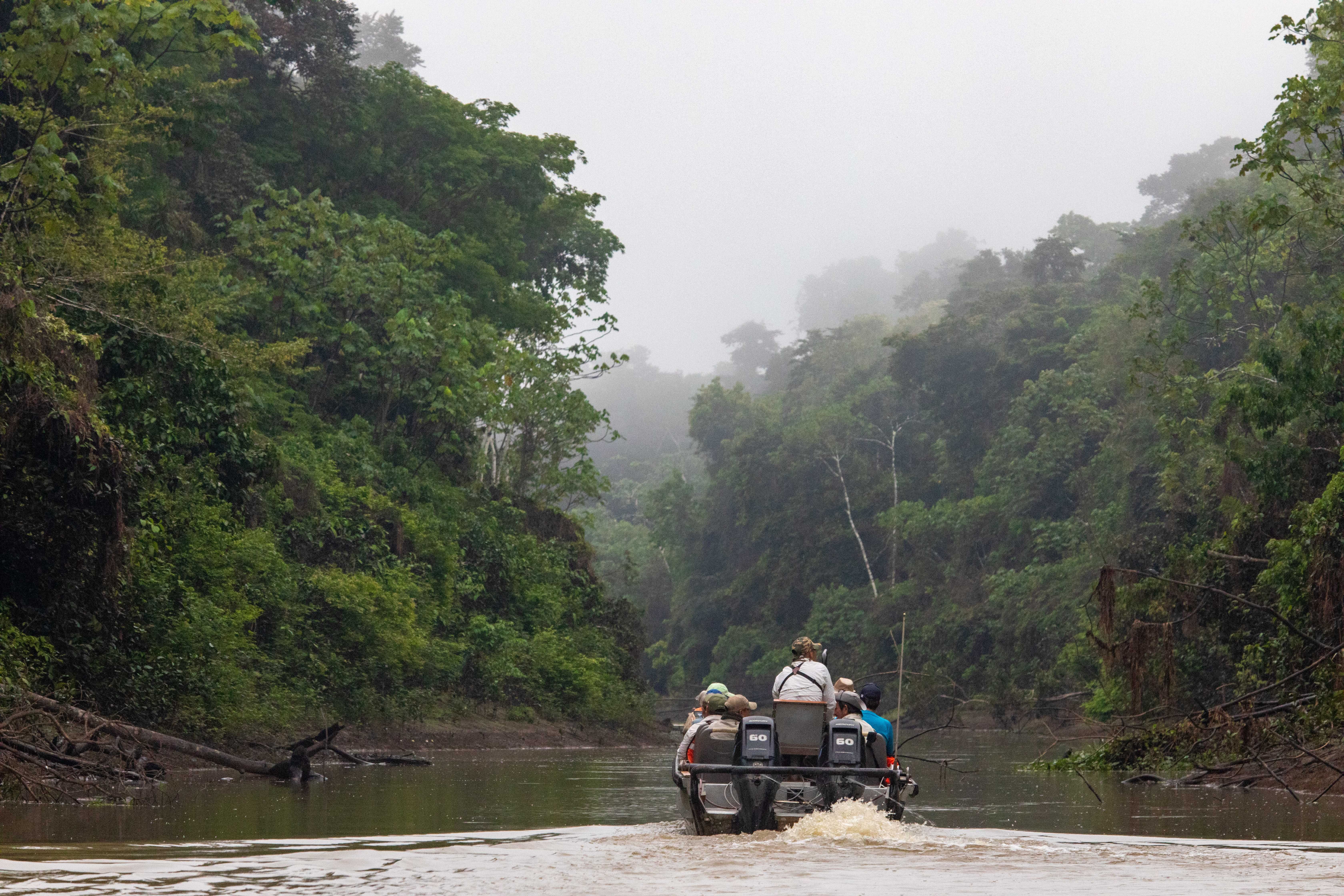Early bird travelers set out before breakfast today for a skiff ride in Pahwachiro Creek while others took some much-needed rest time in the morning. The waters were so low in the creek that we barely made it through the entrance; certainly, it will be impassable in another week. The jungle was particularly noisy with birds this morning, making for a wonderful auditory experience as we quietly moved along. Some of us even traded our cameras for audio recordings. Our most exciting sighting of the morning was a ferruginous pygmy owl, the smallest owl in the Amazon and the only diurnal one.