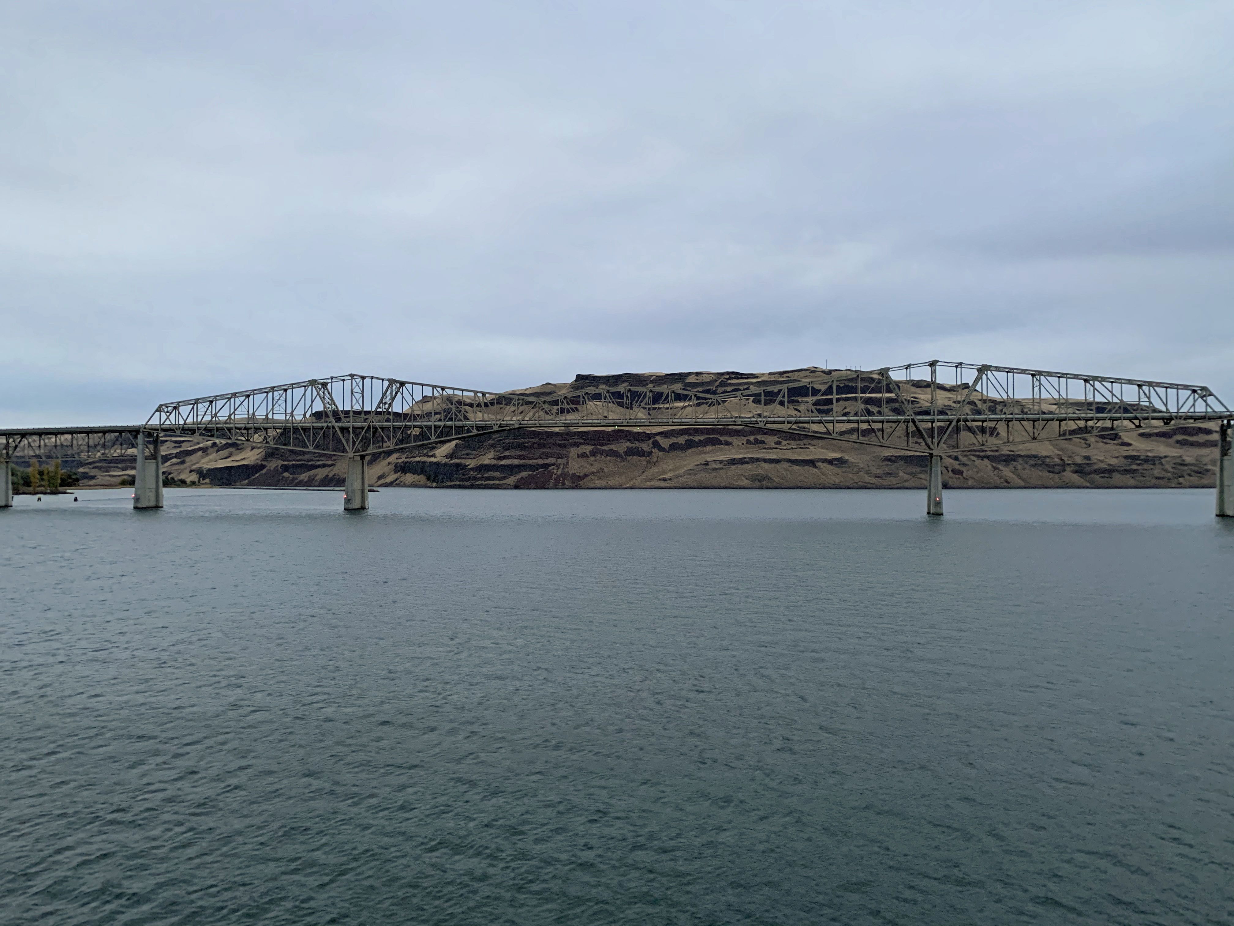 The day began as the sun rose across the Snake River, illuminating expansive basaltic landscapes connected by historic bridges. Completed in 1912 for a staggering sum of 2 million dollars, the 3920-foot-long bridge—with supports dug 65 feet below the riverbed—stands 260 feet above the Snake River. After a buffet breakfast, guests enjoyed "Fire, Ice, and Flood," a presentation by geologist Grace Winer on the Columbia Basin basalt flows caused by the historic Missoula Floods.
