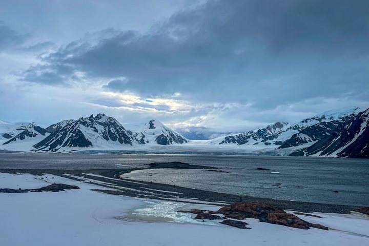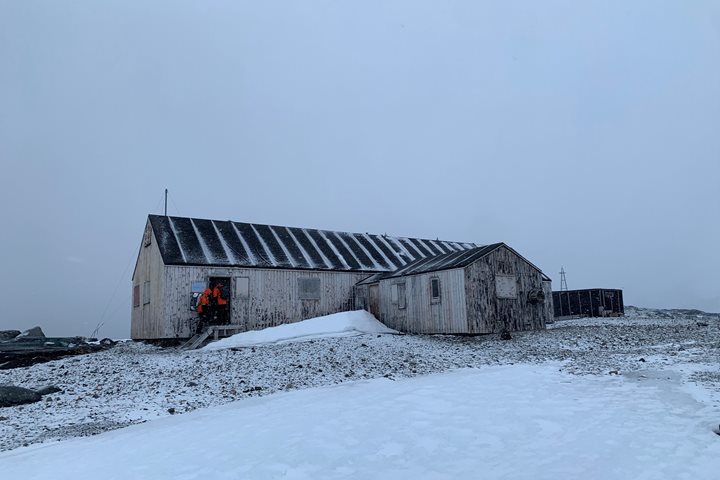 We woke up to cold snowy weather! It had snowed several inches overnight, so the deckhands were clearing the snow off the decks for us. The high winds prevented us from our original landing at Neko Harbor, so National Geographic Endurance moved over to nearby Paradise Harbor for our morning activities. We went on Zodiac tours in two rounds, launching into very wavy conditions. We rode the Zodiacs into a surprisingly calm bay at the base of a huge tidewater glacier. It had a 100-foot glacial face, with blue crevasses and white serracs. All around us were dozens of large blue and white icebergs, most of which had calved off the glacier recently.