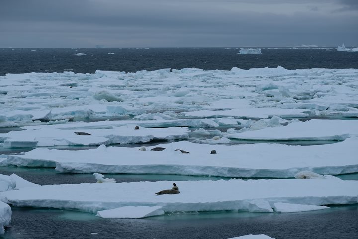 There was a raft of Gentoo penguins swimming around, diving down to feed, and then resting on the surface. The craziest phenomenon was the formation of grease ice, where frazil ice crystals were forming as the sea started to freeze overnight.