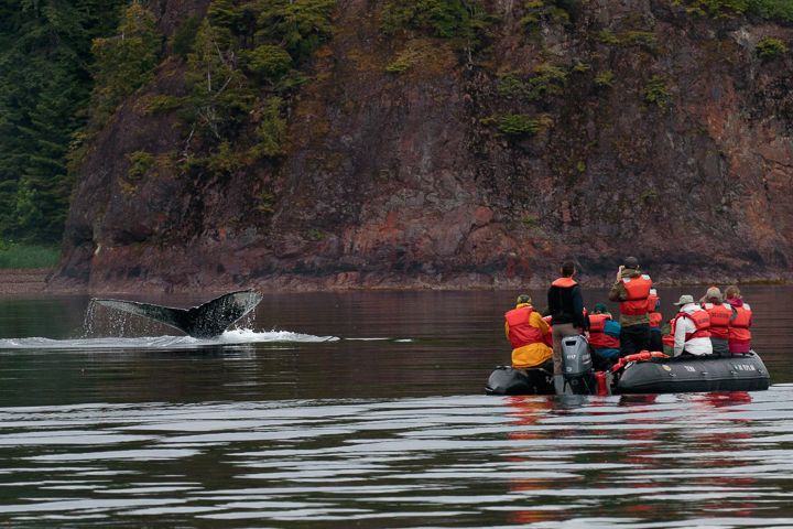 The day began as any normal operations day in Southeast Alaska might. The peacefully anchored National Geographic Sea Bird ran out her small landing craft, and the masses descended upon the forest. Shortly after, the kayaks were launched. It was a classic day in the area, with powerful scenery, moderate temperatures, and liquid sunshine. Then, everything changed. The call came out over the radio that not far away was a group of humpback whales engaged in cooperative bubble-net feeding! Everyone rushed for a seat on a small rubber boat, and we were whisked out across the water to get a look. That pretty much set the schedule for the rest of the day. The boats came back to the mother ship for lunch, and the whales returned shortly thereafter. We stayed in the area for the rest of the day, watching the feeding display and making images.