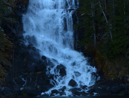 Although the evidence of bears was seen in the leftover skunk cabbage from their post hibernation feast, we would have to wait and see if the afternoon would offer the opportunity for a live viewing. Cruising Chatham Strait we got our wish… spotting a brown bear searching for food in a protected sandy cove. As the afternoon came to a close, the National Geographic Sea Bird made one final stop to enjoy a picturesque waterfall providing the finale of a beautiful day.