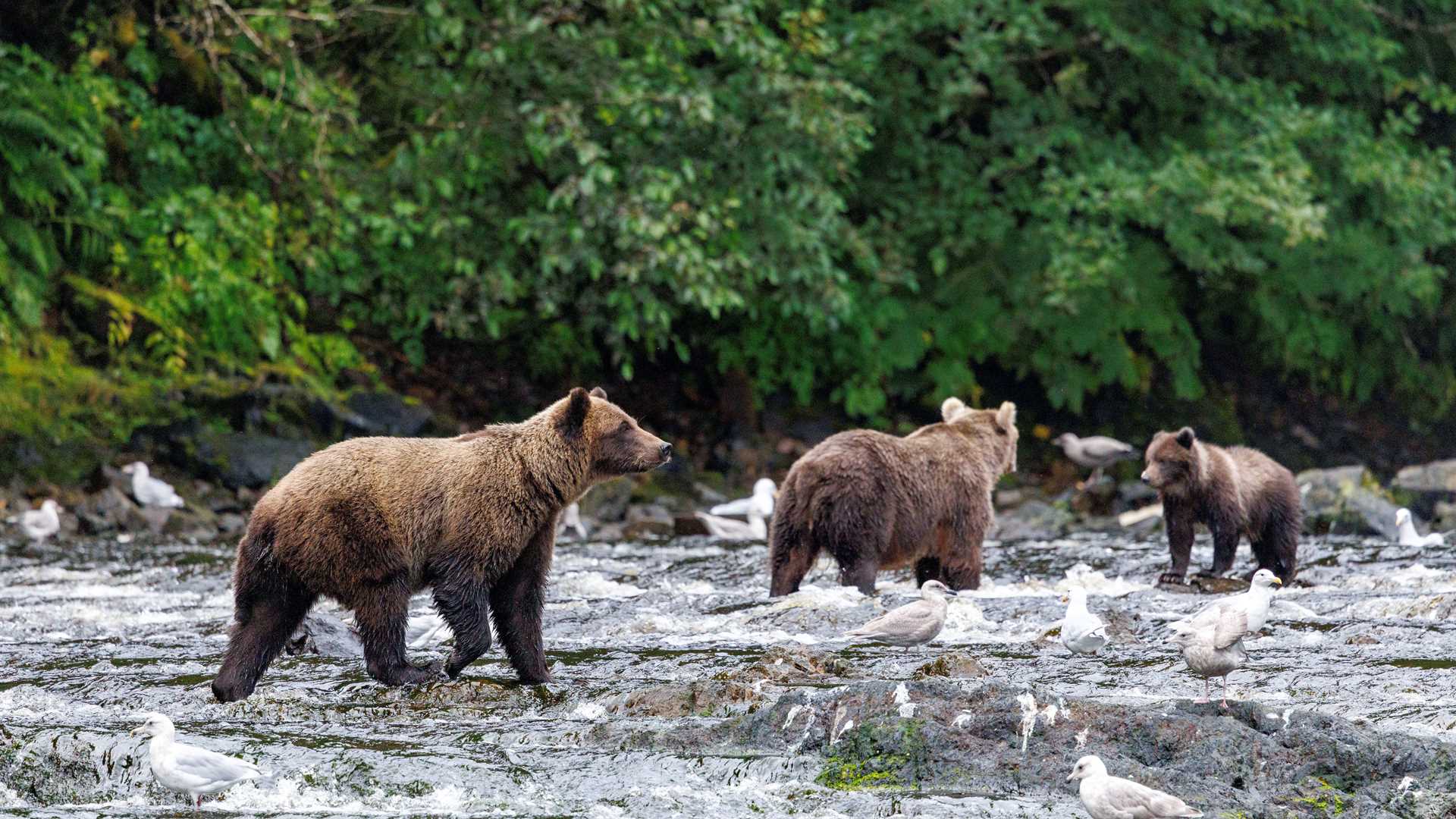 It was a beautiful morning as we sailed toward and into Pavlof Harbor. We were greeted by a brown bear mother and cub walking along the shoreline. We dropped our Zodiacs and cruised over to a nearby waterfall, where there was a group of brown bears of different ages catching pink salmon and playing in the water. We floated quietly and watched them go about their fishing. We then set sail through the huge fjord of Chatham Strait, looking for charismatic megafauna. After spotting a bunch of spouts in the distance, we headed toward the shoreline, where we witnessed a dozen humpback whales blowing, fluking, and bubble-net feeding. We celebrated the magnificent day with our final cocktail hour, recap, and the guest slideshow. It was a wonderful way to end our Southeast Alaska adventure.