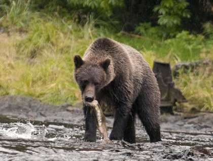 Most of our walks to Pavlof Lake were cut short by a feeding bear. The creek that flows out of the lake tumbles down about a 15-foot-high cascade and then spreads out onto a rocky intertidal area. In the last month of summer, most of the thousands of pink, sockeye, and Coho salmon are able to work their way up through the rocky maze to the lake and beyond. The best time for their journey is near the top of a high tide when they are the least exposed to the sharp claws and lethal teeth of a bruin. As we hiked along the shoreline, we soon encountered a brown bear making abrupt dashes that ended in sudden stops punctuated with flying water and quick movements as slippery salmon barely escaped with their lives. The easiest to catch were those that were slowed from the internal reconstruction of flesh to eggs. Many had just spawned and were struggling to merely stay in the current. Bears can be a fussy bunch, taking only those salmon that provide the highest caloric reward. They rip open the bellies for the eggs of some or bite out the brains of others. It is a raw and essential spectacle to behold. We were in awe, mesmerized by the eating habits of this great beast. The plans for our long, medium, and easier hikes were thrown into disarray. So we just watched, some in expedition landing craft and others in kayaks, while hikers sat on grassy knolls or peered down from elevated places among the spruces.