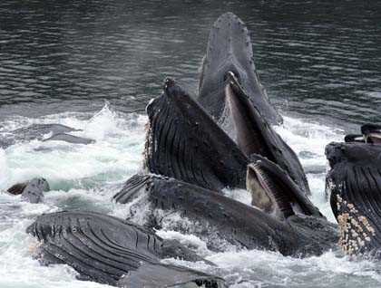 Lunchtime brought us back to the ship, but before we could scoop our ice cream sundaes we were dashing back to the bow for more bubblenet feeding. This large group of whales kept us captivated until we finally had to pull away from Pavlov Harbor.