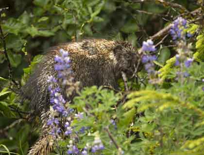 One of the motivators behind statehood was the state taking control of fisheries and fish traps were immediately abolished in 1959. Scaling a small face aside the waterfall we looked down onto a fish ladder built in the 1930’s to help enhance the fish population. Further up the trail, along the edge of the stream, we found the impressive abode of Castor canadensis, North America’s largest rodent. A valuable commodity the search for beaver was the result of much of the early exploration of North America as their pelts were the single most valuable commodity through the early 1800's. Close to the lodge we also spotted bear tracks and a bear scratching tree with bear hair glued to the sap. Up at beautiful Pavlof Lake a wood frog was caught and we learned their strategy of surviving the winter is to freeze solid.