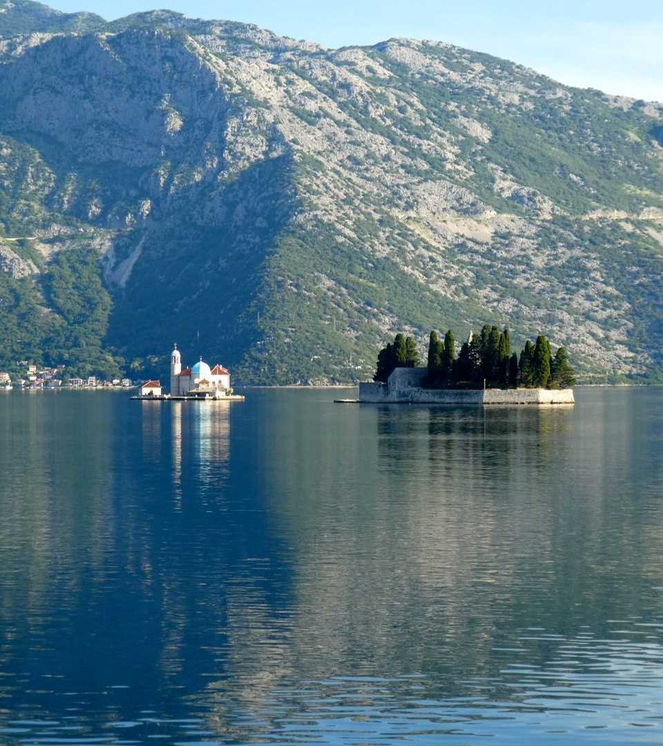 Brilliant blue skies and the bright light of dawn’s first rays hitting the water created mirror-like reflections of the 3,000-foot-high mountains ringing the shore of Boka Bay at the eastern end of this 17-mile inlet on the Dalmatian coast. The morning’s activities focused on a visit to the village of Perast, a UNESCO World Heritage site renowned for its maritime academy and Venetian architecture. We boarded local boats to visit the two “floating” churches of Our Lady of the Rocks and the smaller monastery of St. George. On our return to Perast, we visited the Church of St. Nicholas and its towering Venetian-styled campanile before returning for a short walking tour of the walled town of Kotor.