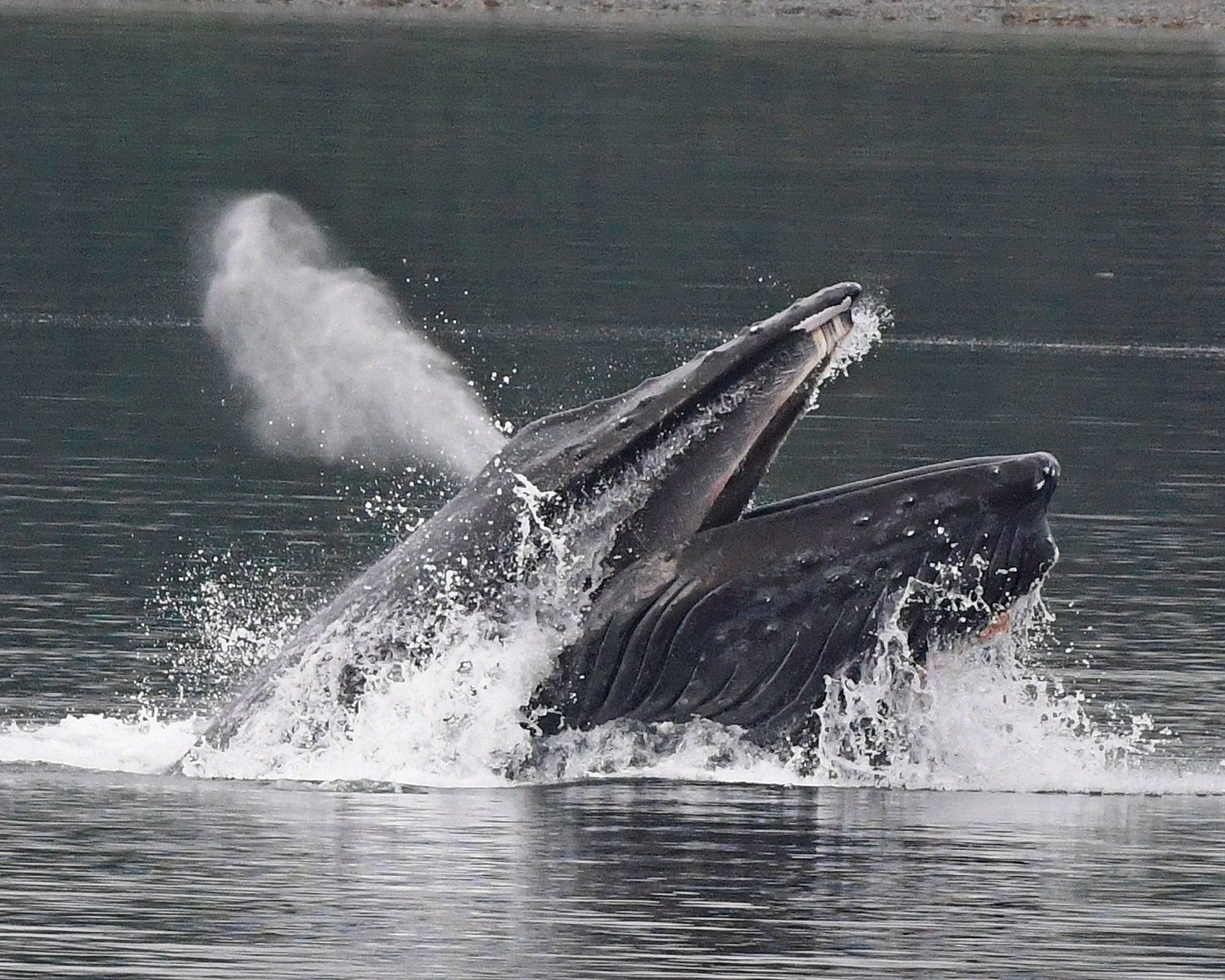 After a steamy frothy espresso and some toe-touching with our wellness specialist, our blood was flowing properly, and we were ready for another day in the Great Land. Diners were joined for breakfast today by a humpback whale cow and calf engaged in restful “logging” activity, setting the stage for a serene morning sail. They turned out to be the first of many majestic M. Novaeangliae we would encounter, most being much more active. We soon found ourselves approaching Morris Reef, and surrounded by not one, but two groups of humpbacks engaged in cooperative bubble-net feeding behavior! We spent time with both pods, viewing and photographing many spectacular lunges, with up to nine of these leviathans’ gaping maws breaking the surface simultaneously and in tightly choreographed formation. Our Global Explorers were then given an opportunity to receive Zodiac driving lessons from our USCG-licensed captains. All souls returned. We continued into the storied seven-mile-long Sitkoh Bay. Here we hiked an old logging road; amongst towering Sitka spruce, frequent bear signs, black-tail deer, and banana slugs galore! Once the wind abated, we also had the opportunity to launch our kayaks and enjoy a leisurely paddle in the bay, with views of National Geographic Venture , bald eagles, and an early 1900s cannery sight. At the end of the day, the ship embraced our return with cocktails, charcuterie, and conversation. A typically highly succulent dinner was followed by a night-capping presentation on birds of the region from our resident ornithologist.