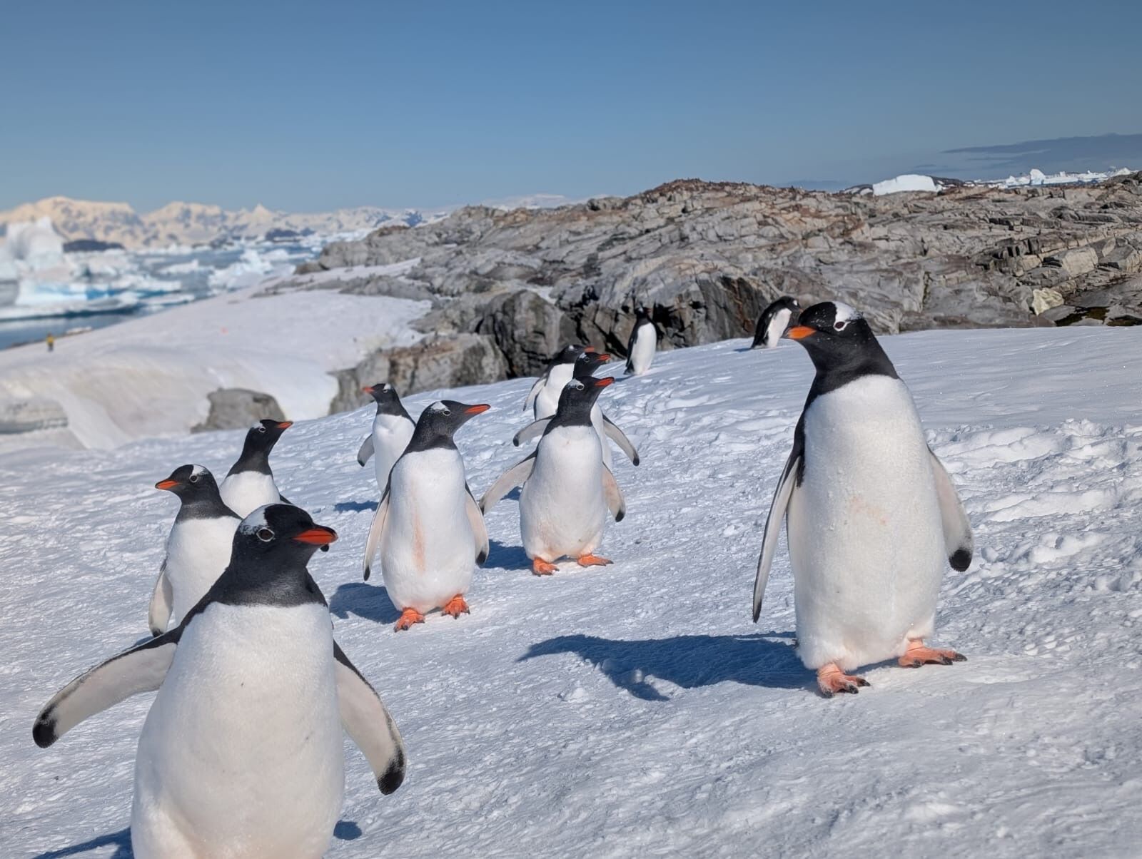 From the top of the island, guests were able to see hundreds of icebergs, scattered humpback whales, and groups of penguins busily porpoising in the mirror-flat surface of the ocean.