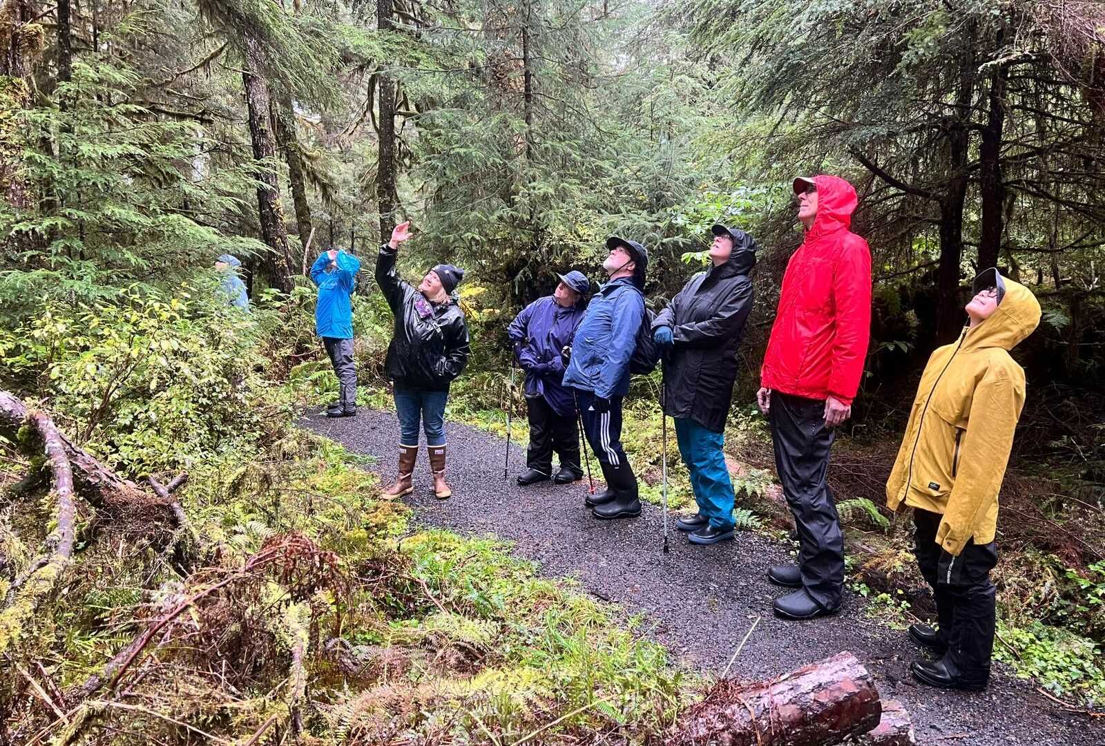 It was a soft Alaska morning into which we had many options for exploration; different walks in the forest, boat tours around the harbor, an exploratory bike tour, and a chance to visit town at our own pace. In a light drizzle, it was an opportunity to test our raingear as we embraced the Scandinavian saying; “there is no bad weather, only bad clothing”. By late afternoon all were aboard and cozily settled in the lounge as we transited the dramatic channel of the Wrangell Narrows, heading south towards Canada but with one more day to explore the wilds of Southeast Alaska.