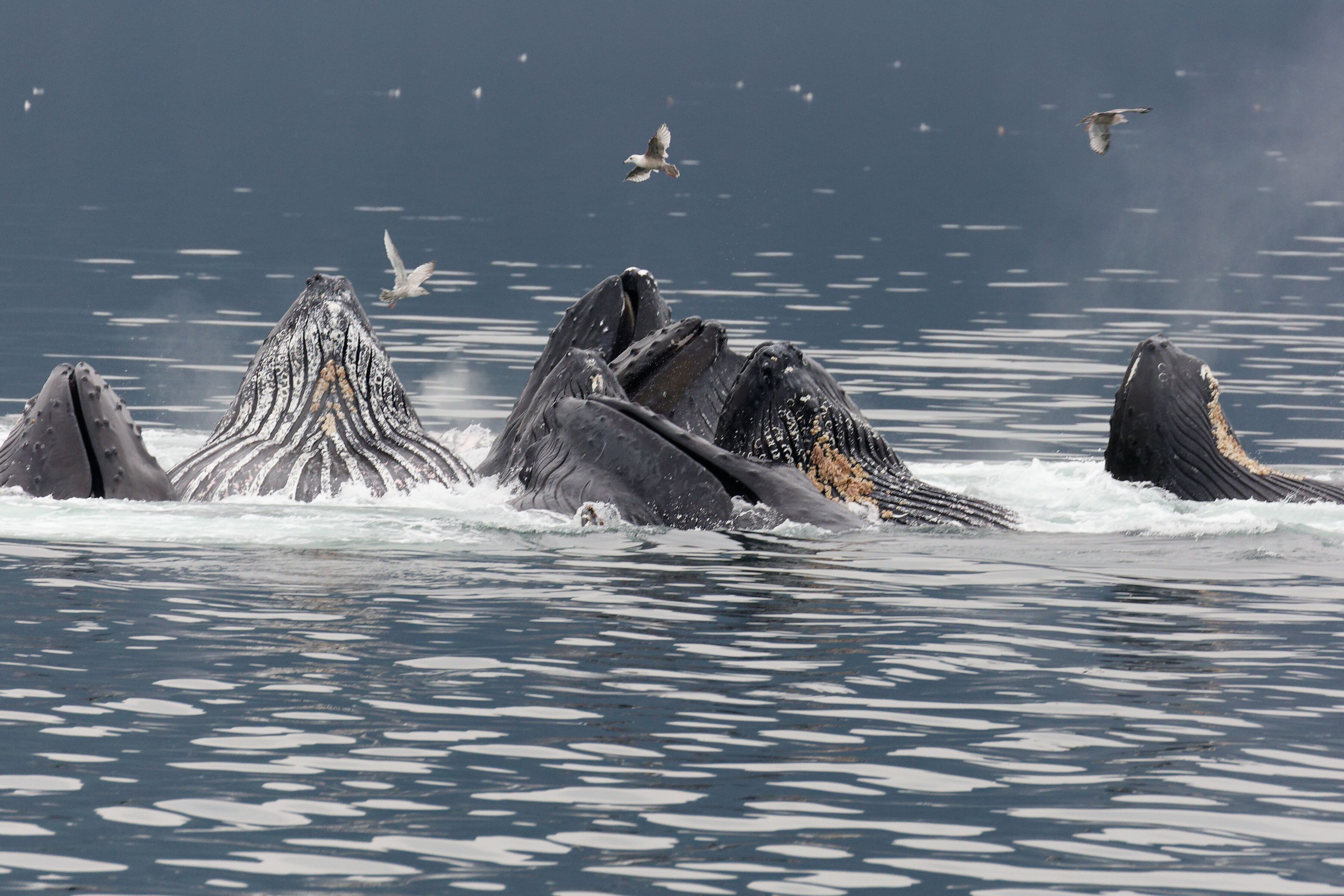 National Geographic Quest visited the low-lying limestone landscape of northwestern Kuiu Island today. Our morning at Halleck Harbor provided a mix of familiar and new. Hikers encountered several “new-to-us” forest understory plants associated with the bedrock’s regionally unique chemistry. Farther-ranging, bushwhack-style hikes glimpsed signs of beaver. Kayakers enjoyed launching from an even, soft gravel beach to share a calm bay with sea otters and abundant intertidal life. A few fortunate paddlers spotted a black bear on the beach. The afternoon brought exploration via Zodiac of the maze of long, narrow, glacially-gouged Keku Islands. Bald eagles and marbled murrelets abounded, while sea lions and black oystercatchers made occasional appearances. Moss and wildflowers provided lovely hanging garden grottos on limestone walls towering over narrow channels. Glassy waters reflected a mix of sun and passing rain showers. Rainbows and humpback whales highlighted a gorgeous evening of cruising Frederick Sound.